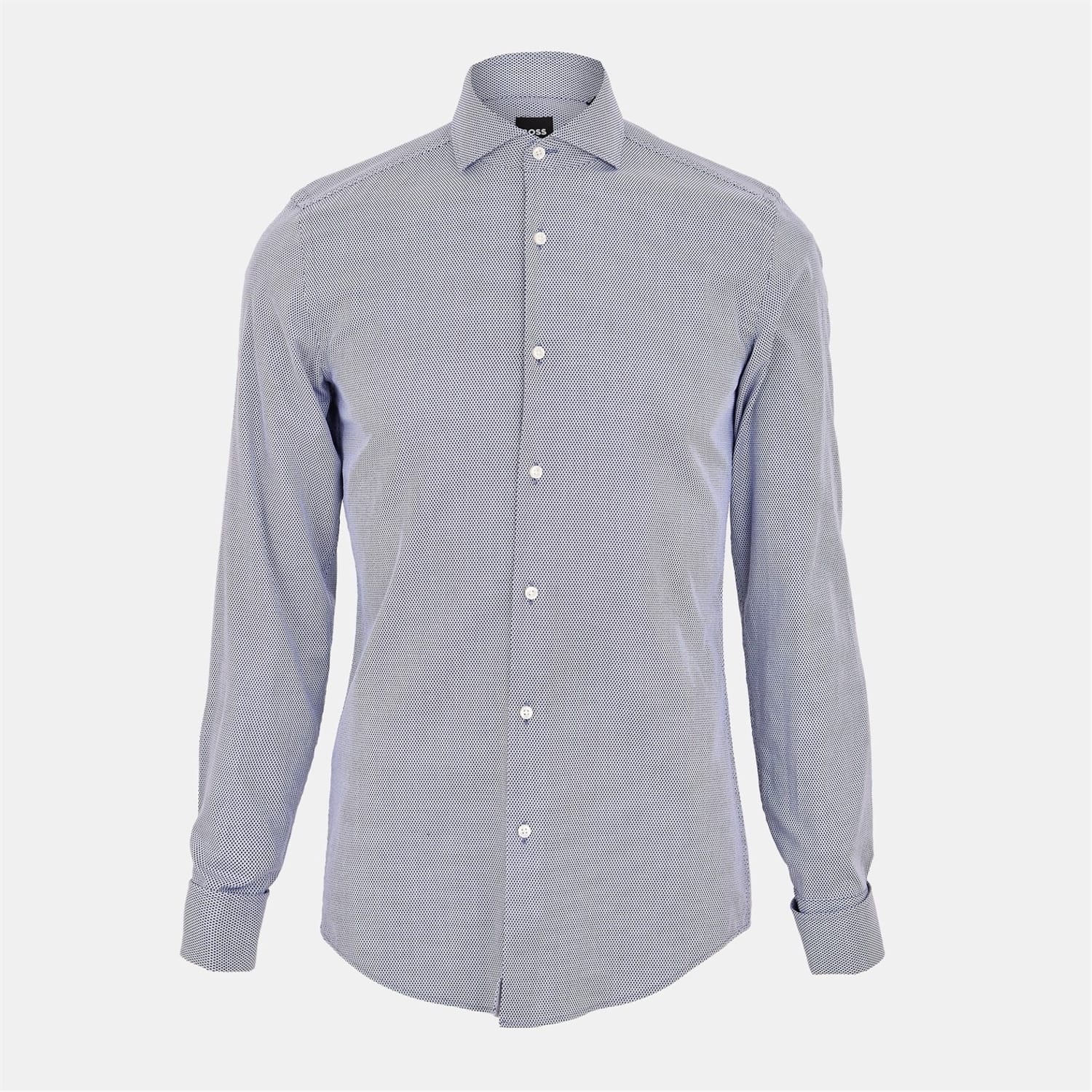 This Boss top features a solid pattern with long sleeves and a spread collar. Designed with a button closure and barrel cuffs, it offers a regular fit for a classic look. -