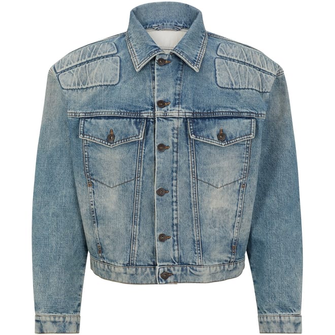 This Boss denim jacket features a classic shirt collar and a button closure, offering a regular fit. The solid pattern and straight hemline provide a timeless look, while the chest pocket adds a touch of practicality. Designed in a short length, this jacket is a versatile addition to any wardrobe. -