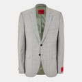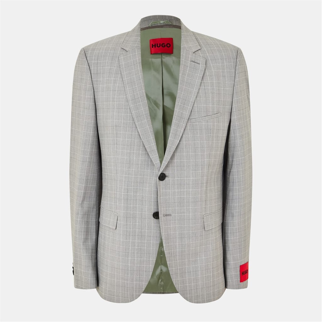 This Hugo suit jacket from the formal collection features a classic notch collar and a straight hem. Designed with a regular fit, it showcases a sophisticated plaid pattern. The jacket is adorned with a subtle logo embellishment and fastens with buttons, making it a refined choice for formal occasions. -