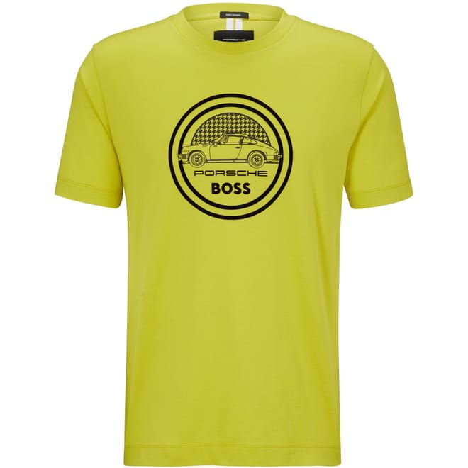 This Boss top features a regular fit and short sleeves, offering a comfortable and stylish option for casual wear. The crew neck design complements the graphic pattern, adding a modern touch to your wardrobe. -