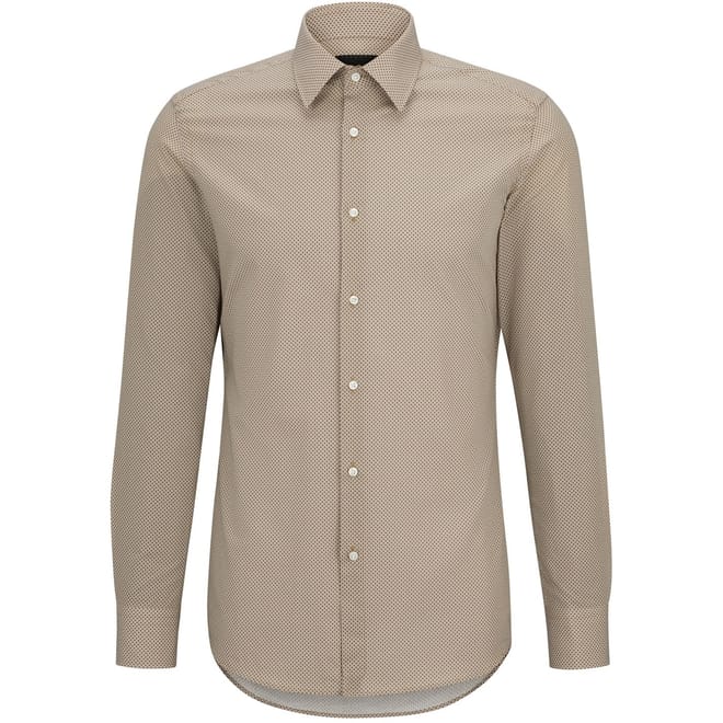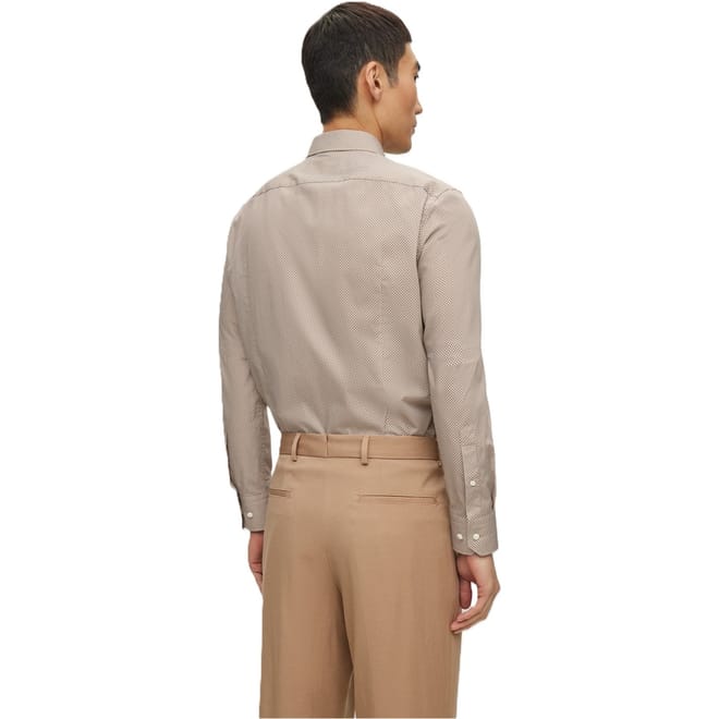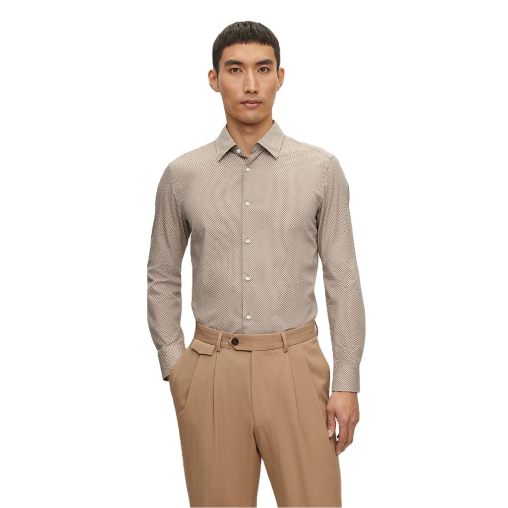 This Boss top features a geometric pattern and is designed with long sleeves and a point collar. It offers a regular fit and is equipped with a button closure and barrel cuffs, making it a versatile addition to your wardrobe. -