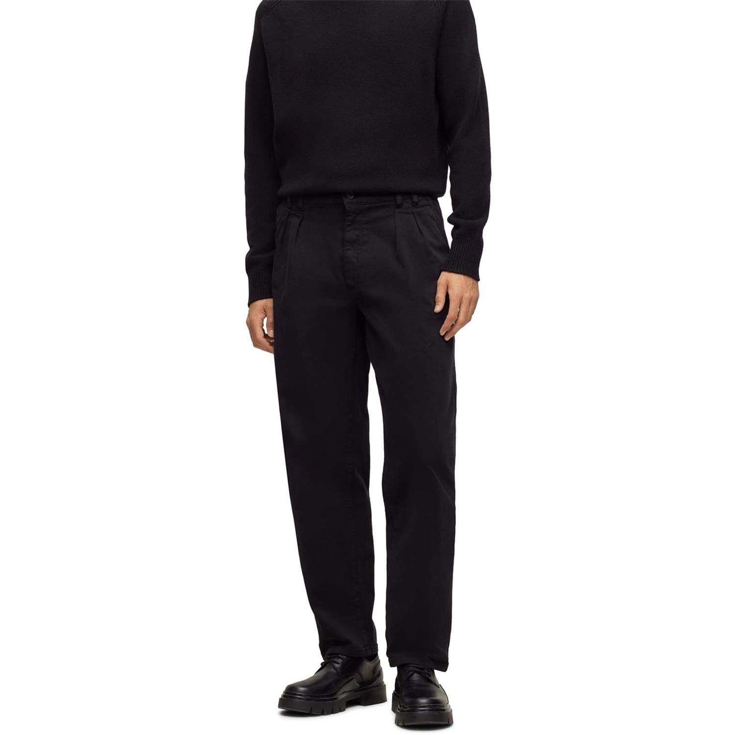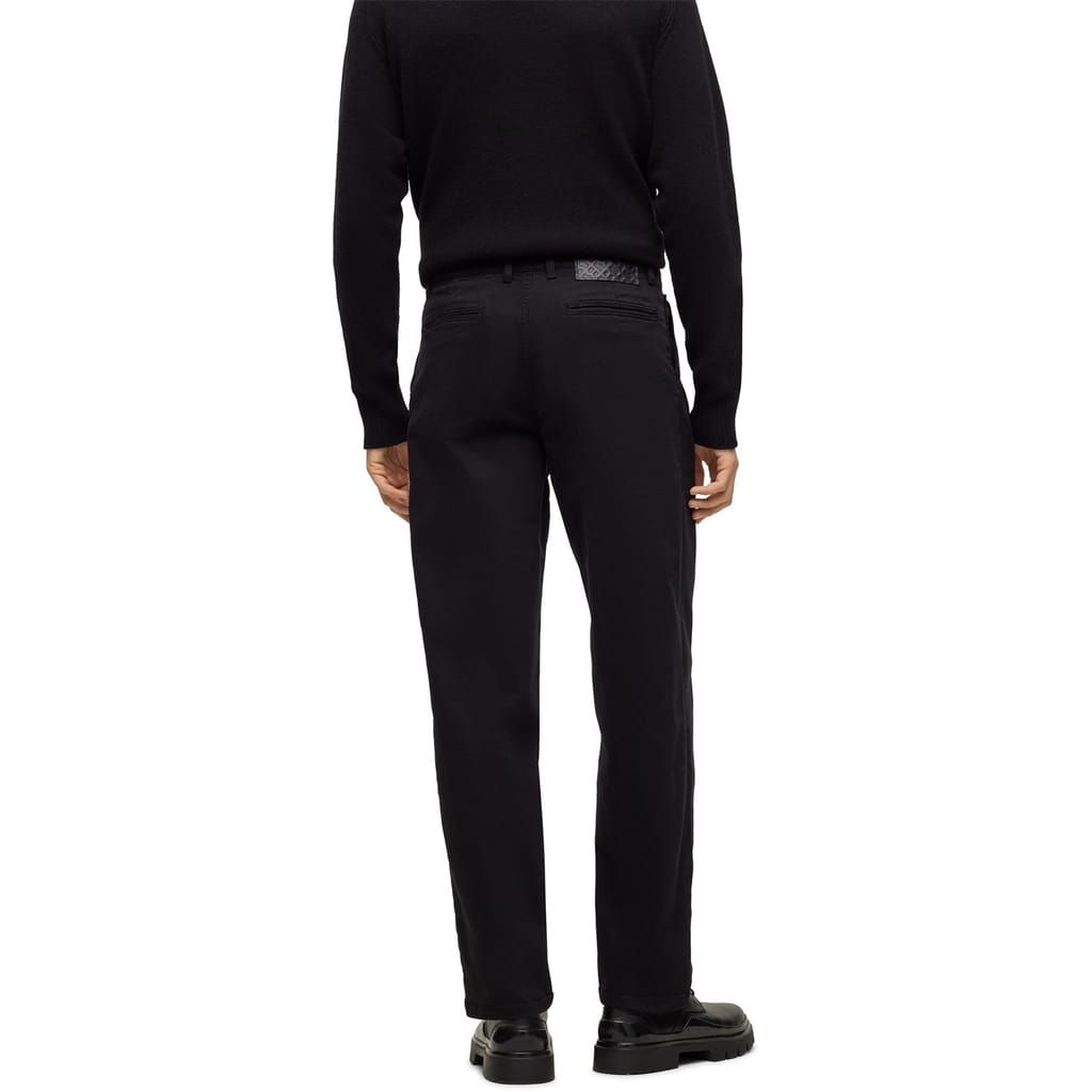 Discover Boss chinos, a perfect blend of style and functionality. These trousers feature a zip fly, front button, and belt loops for a secure fit. Designed with practical pockets, including front, welt back, and back pockets, they offer ample storage. A waist patch adds a subtle touch of detail, making these chinos a versatile addition to your wardrobe. -