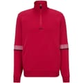 This Boss top features a solid pattern with a zip neck and long sleeves. The regular fit ensures comfort, while the ribbed cuffs add a touch of style. A logo embellishment completes the look, making it a versatile addition to your wardrobe. -
