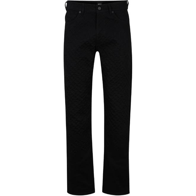 Discover the textured jeans from Boss, featuring a classic five-pocket design. These straight-fit jeans come with a zip fly, front button, and belt loops for a secure fit. Embellished with pockets, including back and coin pockets, and an embossed detail, they offer both style and functionality. -