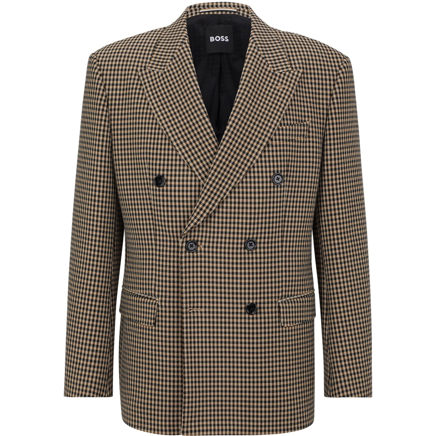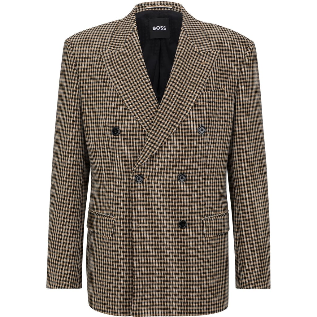 Elevate your formal wardrobe with this Boss blazer, featuring a classic houndstooth pattern. Designed with a button closure and a regular fit, this piece offers a sophisticated touch to any ensemble. Ideal for formal occasions, it combines timeless style with modern elegance. -