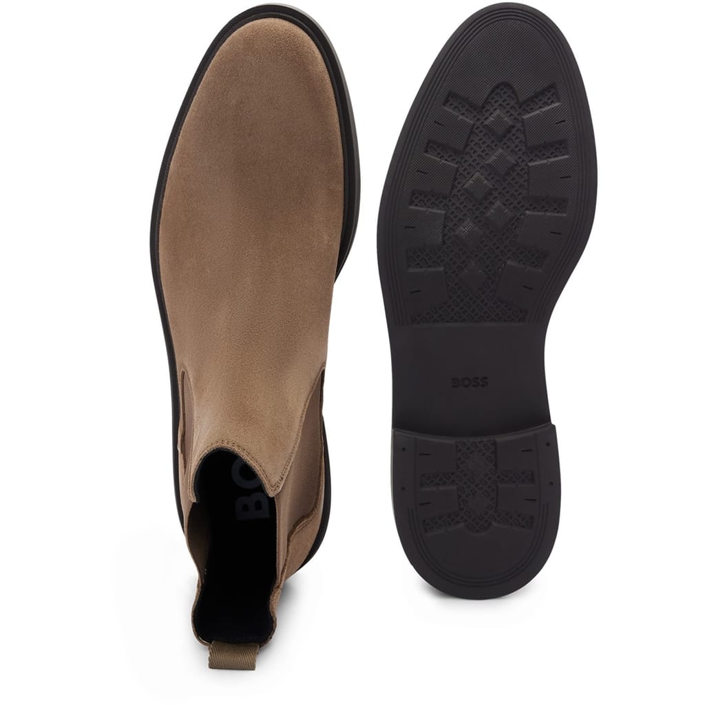 Discover the refined elegance of Boss Chelsea boots, a sophisticated addition to any footwear collection. Crafted with a classic round toe, these boots offer a timeless silhouette that seamlessly blends style and comfort. Perfect for those seeking a versatile and polished look, these Chelsea boots embody the essence of modern footwear design. -