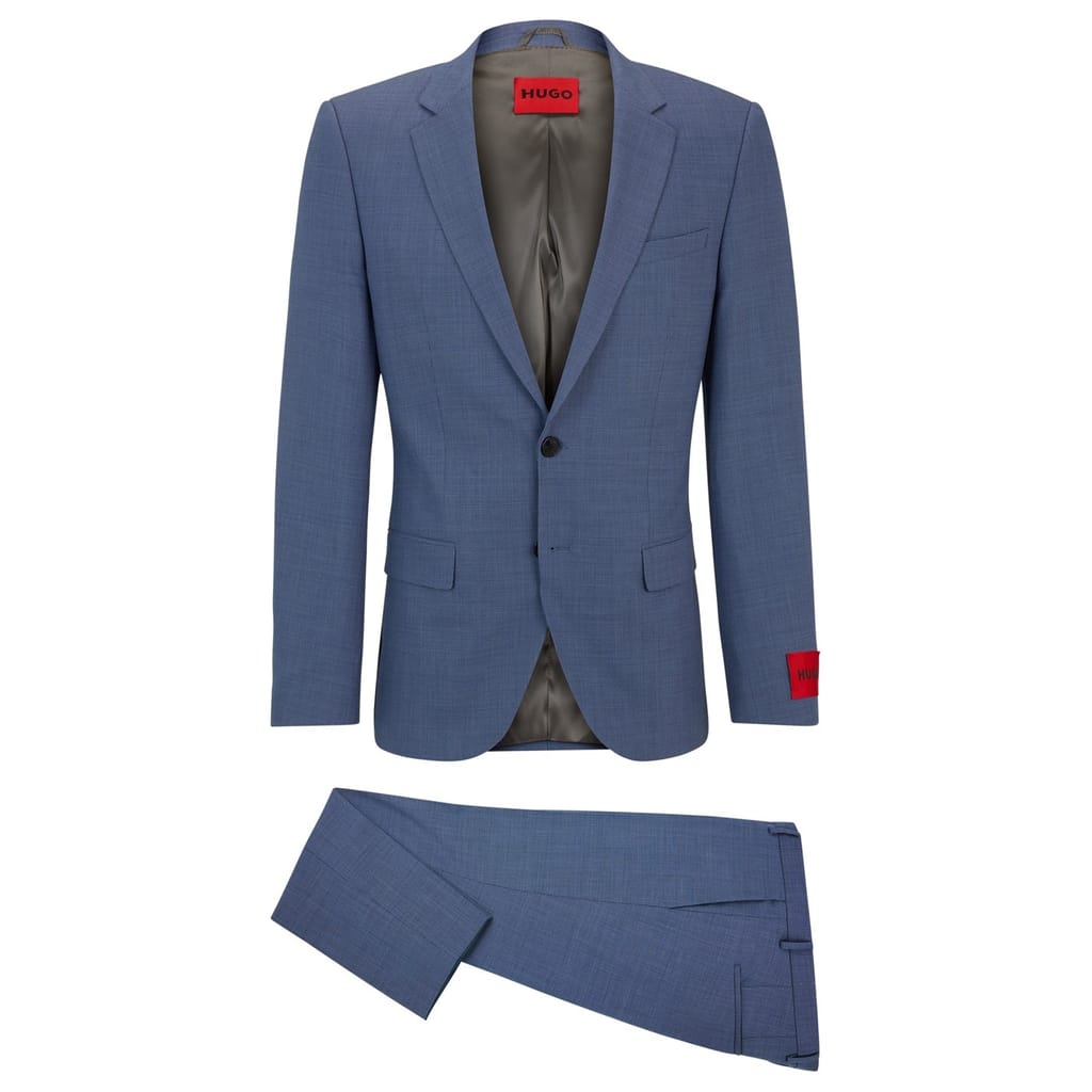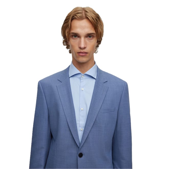This Hugo suit jacket is crafted with a notch collar and a straight hem, offering a sleek and sophisticated look. The solid pattern and slim fit ensure a modern silhouette, while the button closure adds a classic touch. Perfect for formal occasions, this jacket embodies timeless elegance. -
