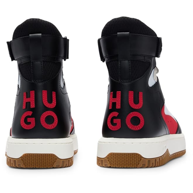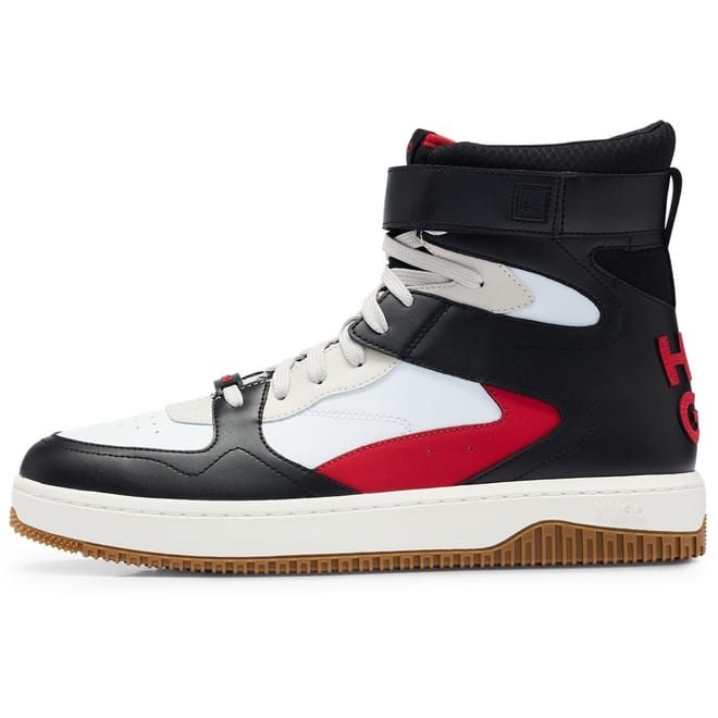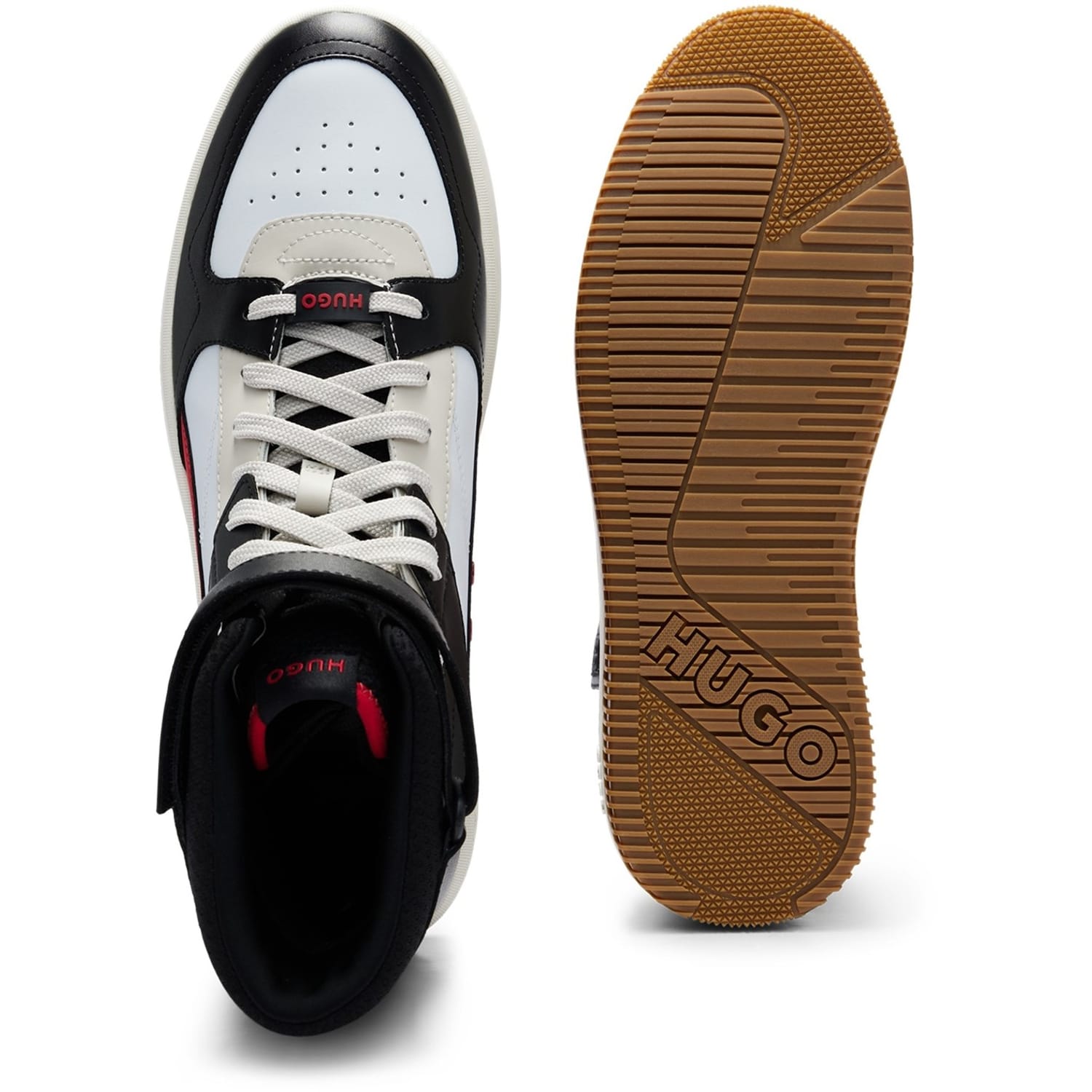 Discover the Hugo hi-top sneakers, a stylish addition to your footwear collection. These court trainers feature a round toe design, offering both comfort and a modern aesthetic. Perfect for those who appreciate a blend of fashion and functionality, these shoes are ideal for making a statement on and off the court. -