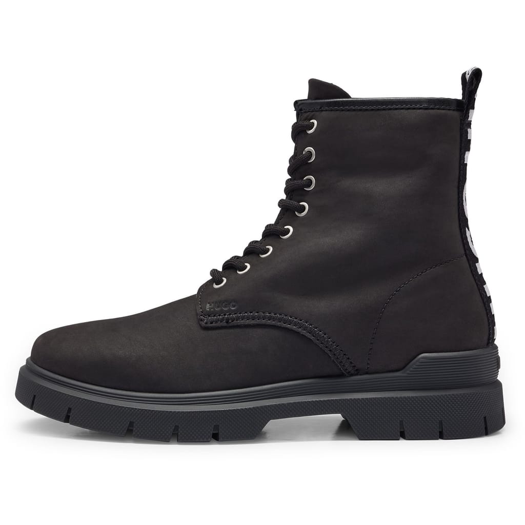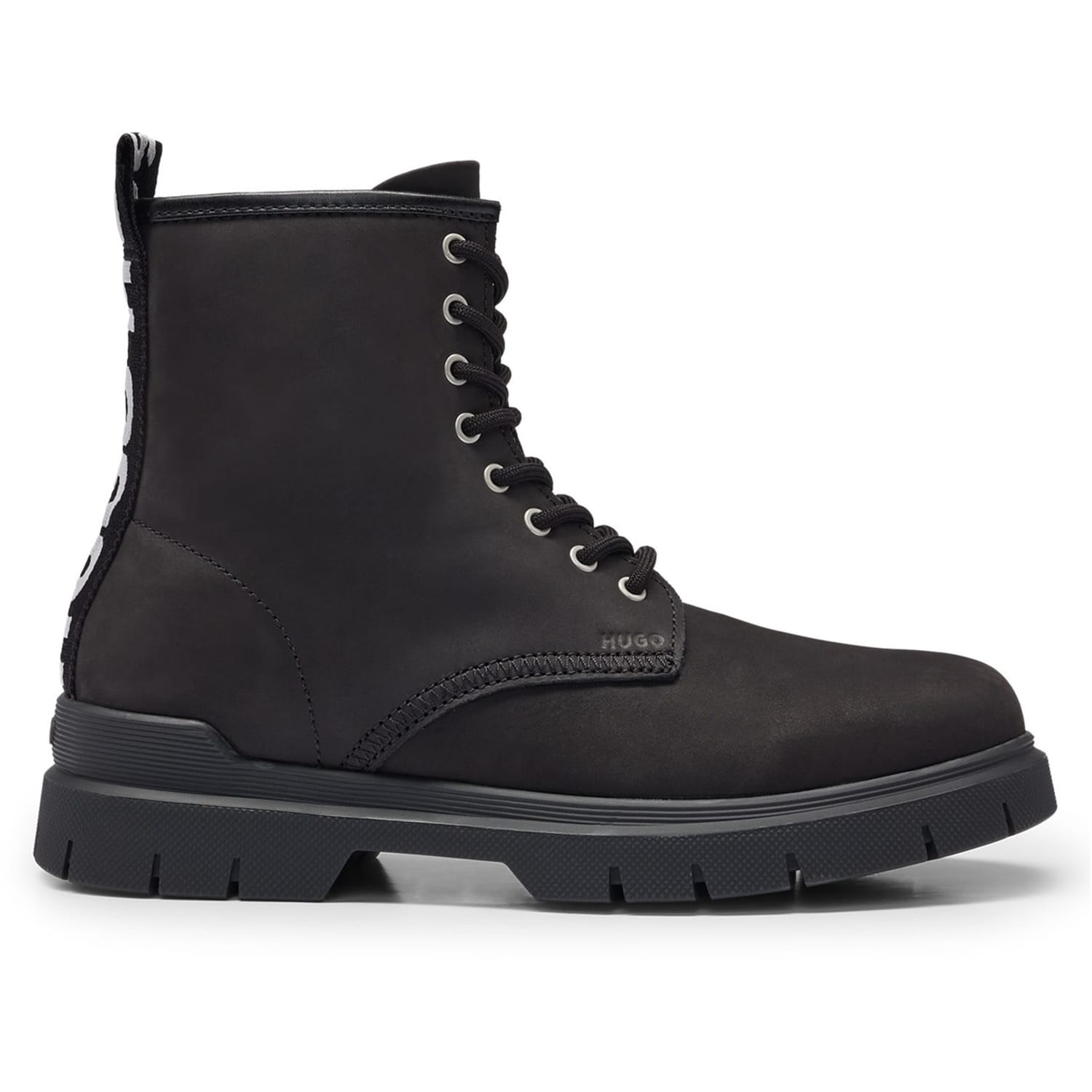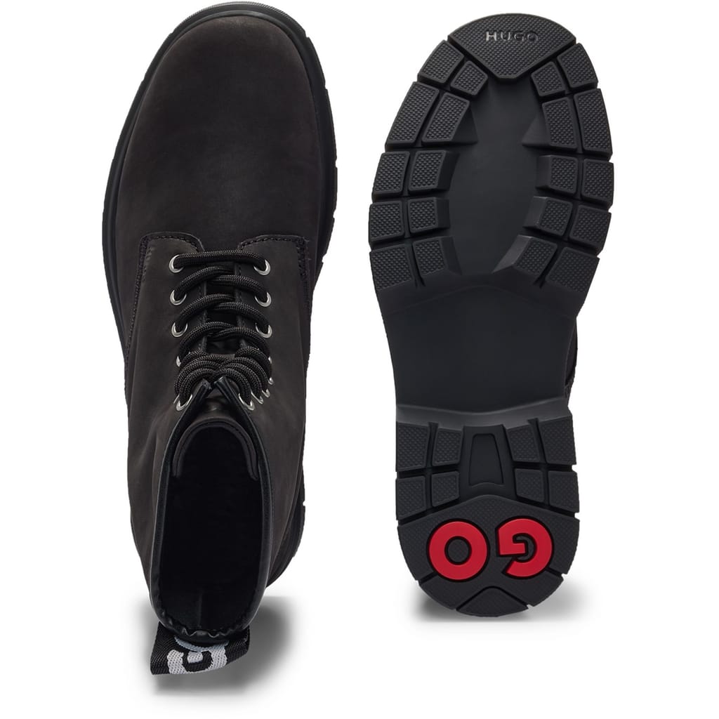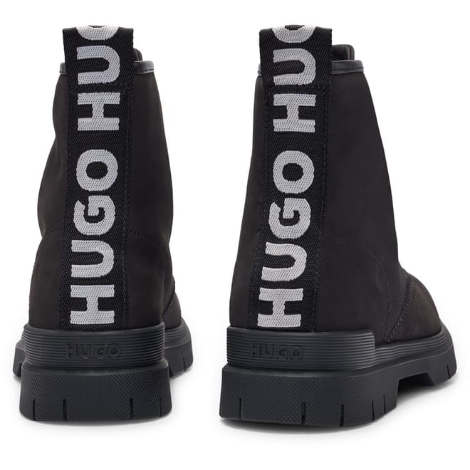 Discover Hugo hiking boots, designed for those who seek both style and functionality. These boots feature a round toe and are adorned with distinctive lettering and a bold logo, making them a standout choice for outdoor adventures. Crafted to provide comfort and durability, they are an ideal companion for your hiking needs. -