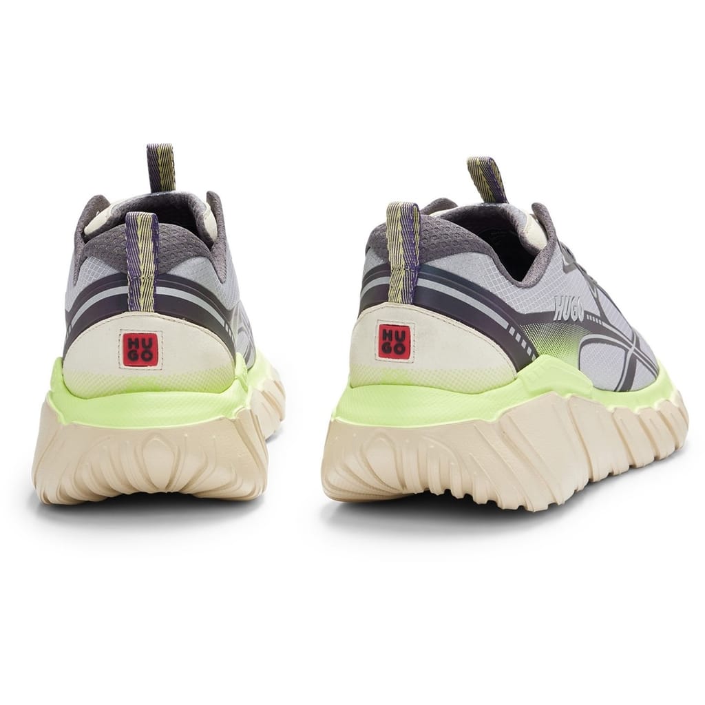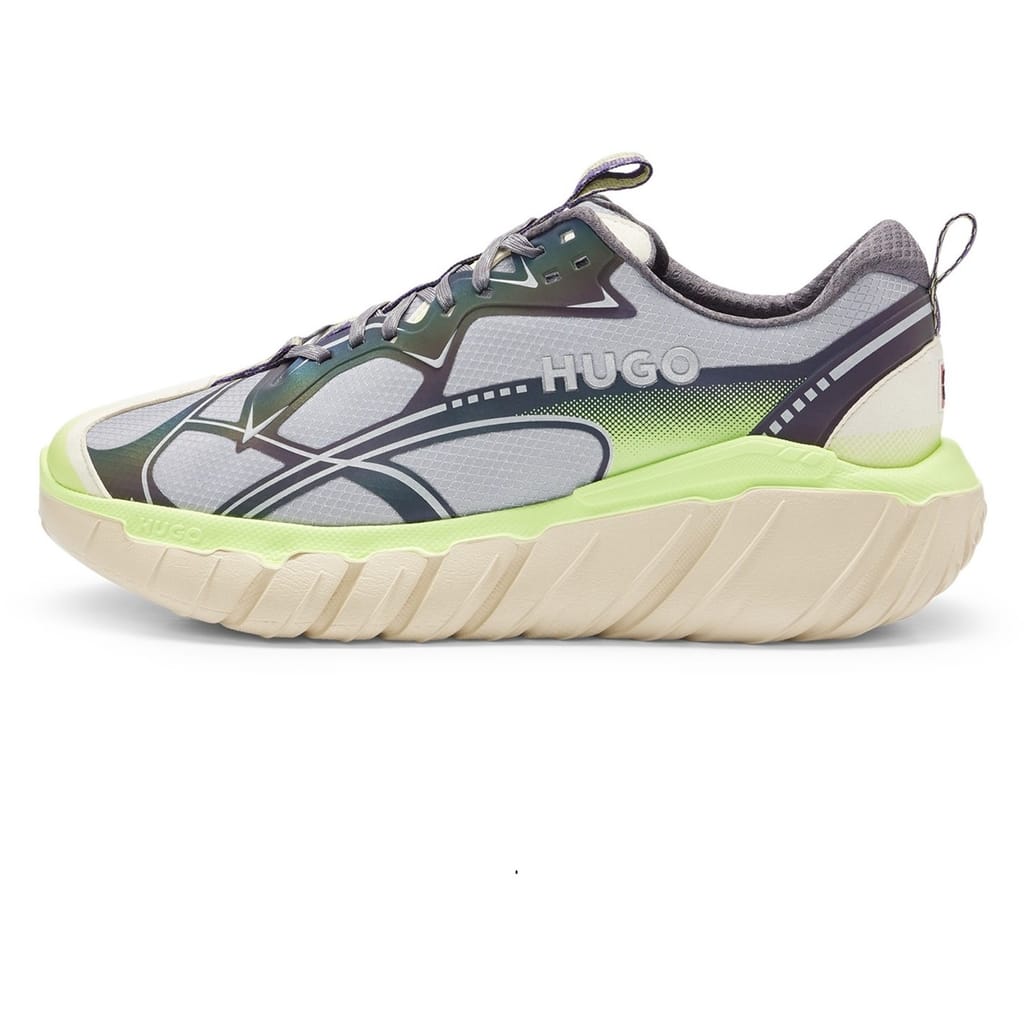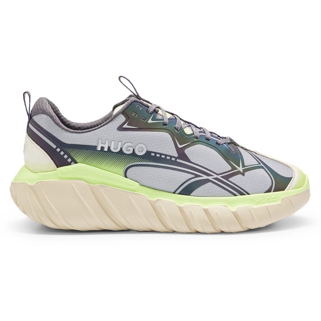 Discover Hugo's low-top running sneakers, designed for road use. These shoes feature a round toe and a striking graphic print, combining style with functionality. Perfect for those who appreciate a blend of fashion and performance in their footwear. -