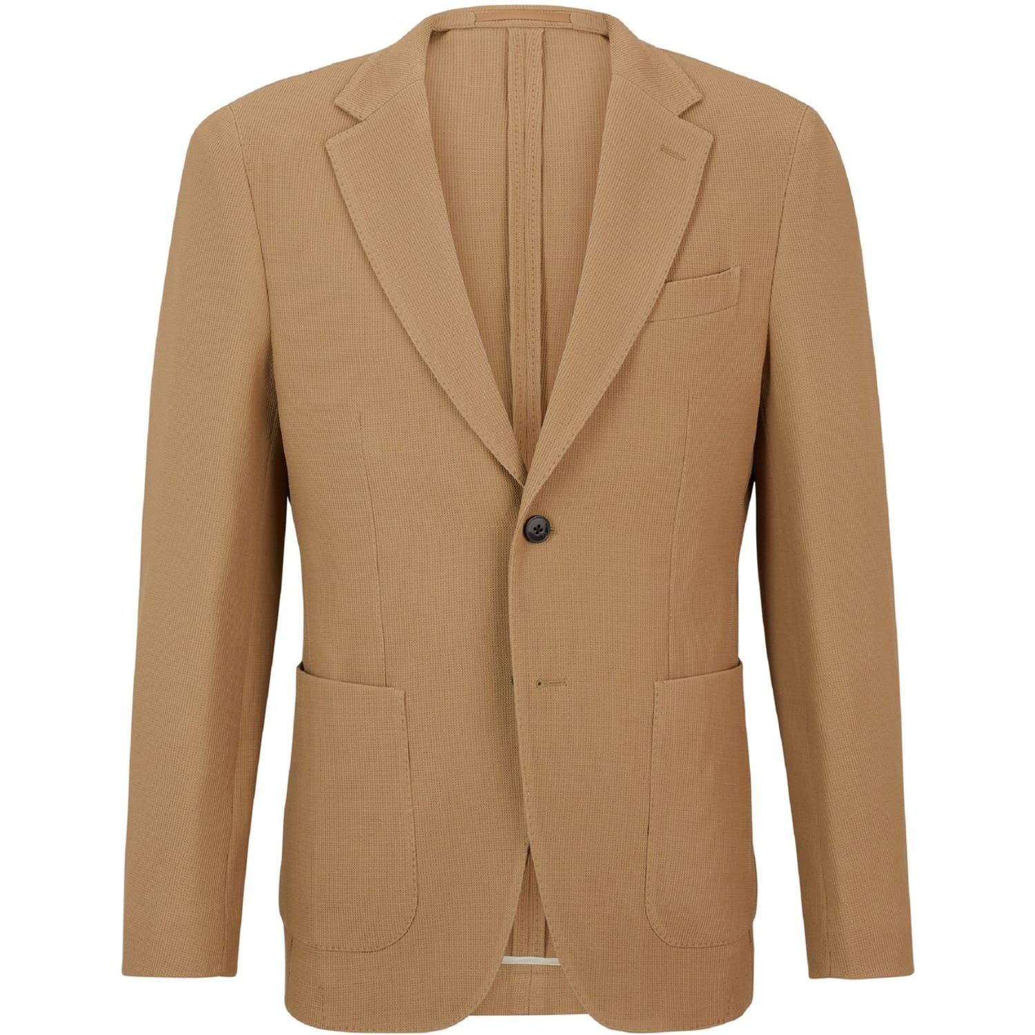 This Boss blazer is a sophisticated choice for any wardrobe. Featuring a lapel collar and a straight hem, it offers a regular fit for comfortable wear. The solid pattern adds a classic touch, while the button closure ensures a secure fit. Crafted with attention to detail, this blazer is perfect for a polished look. -