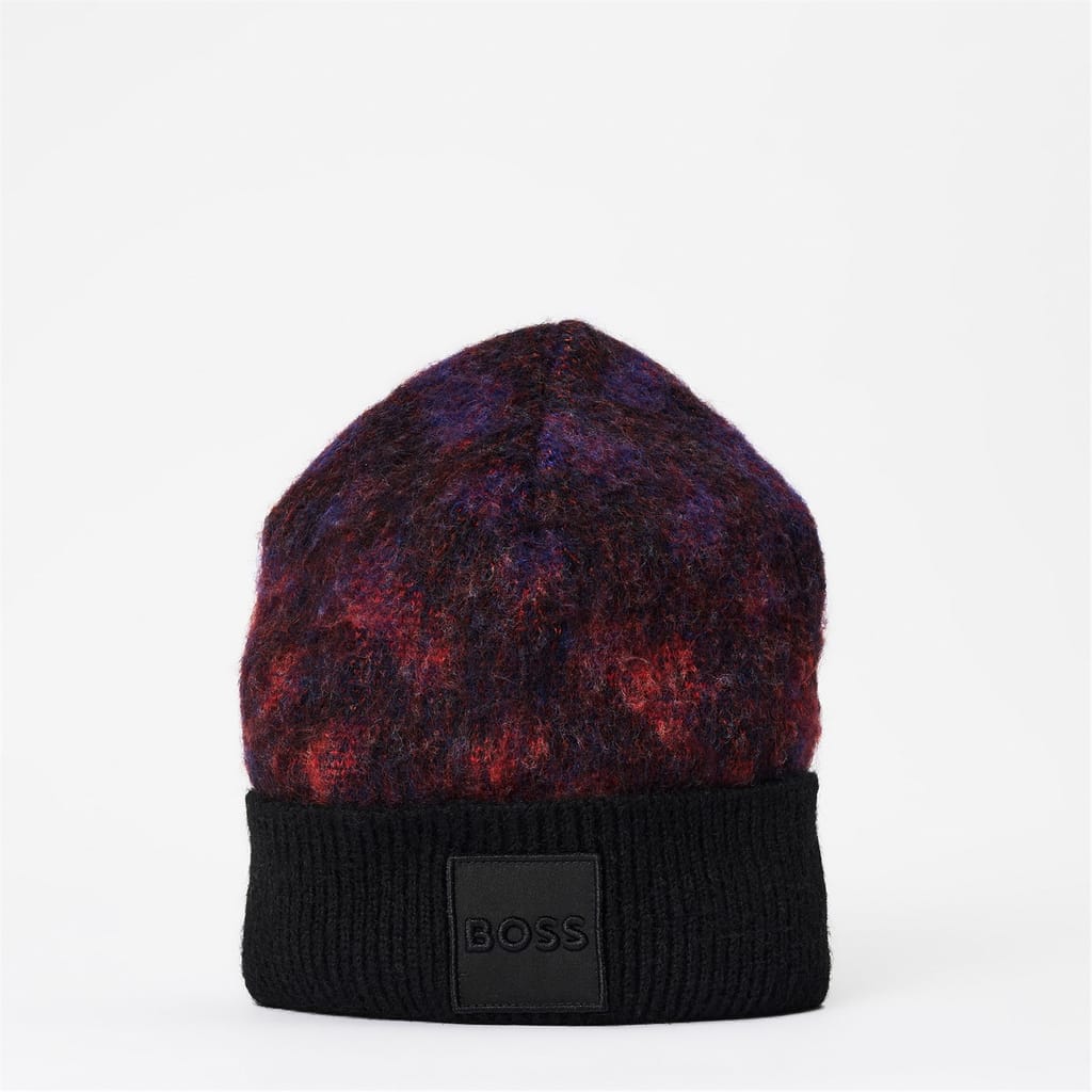 Elevate your style with the Boss beanie, featuring an abstract pattern that adds a modern touch. This hat is adorned with a distinctive logo patch, showcasing the brand's signature emblem. Perfect for those seeking a blend of comfort and contemporary design, this beanie is a versatile addition to any wardrobe. -