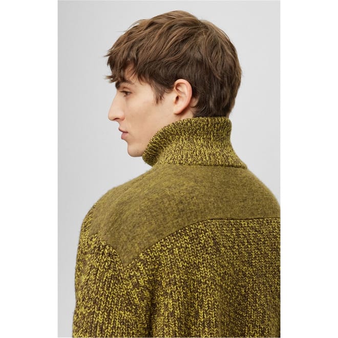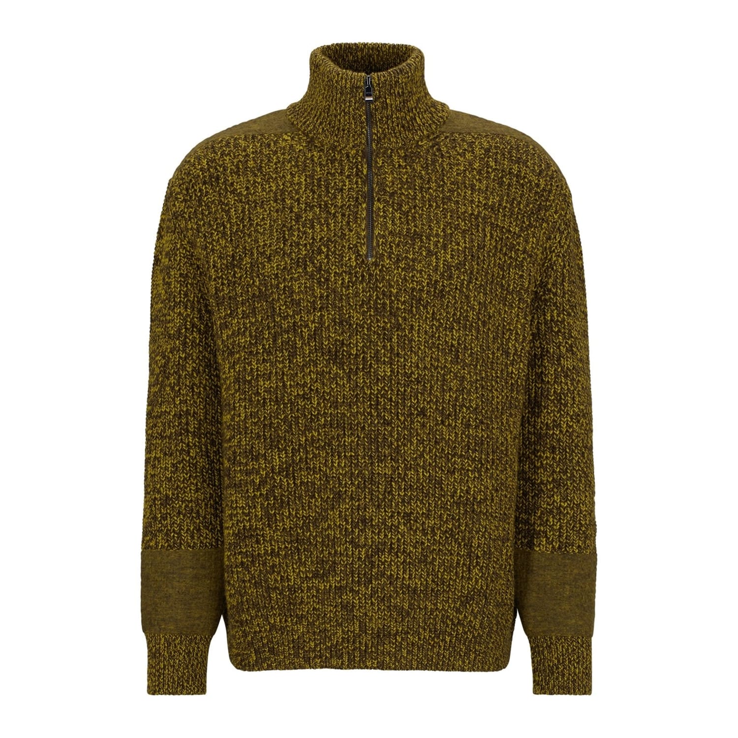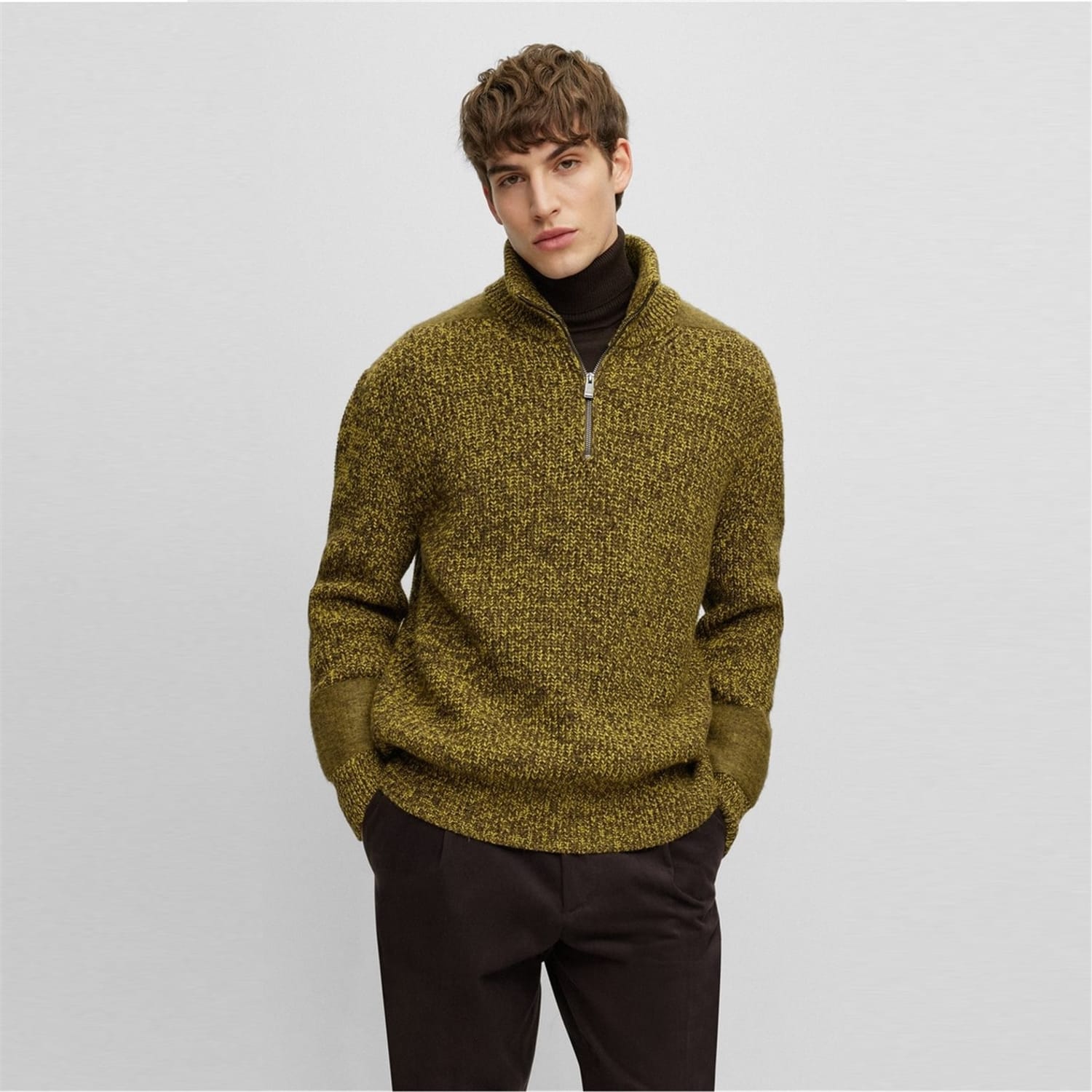 This Boss top features a marled pattern and a zip neck design, offering a stylish yet functional look. The long sleeves are complemented by ribbed cuffs, ensuring a comfortable fit. With a regular fit and a quarter zipper closure, this top is a versatile addition to any wardrobe. -