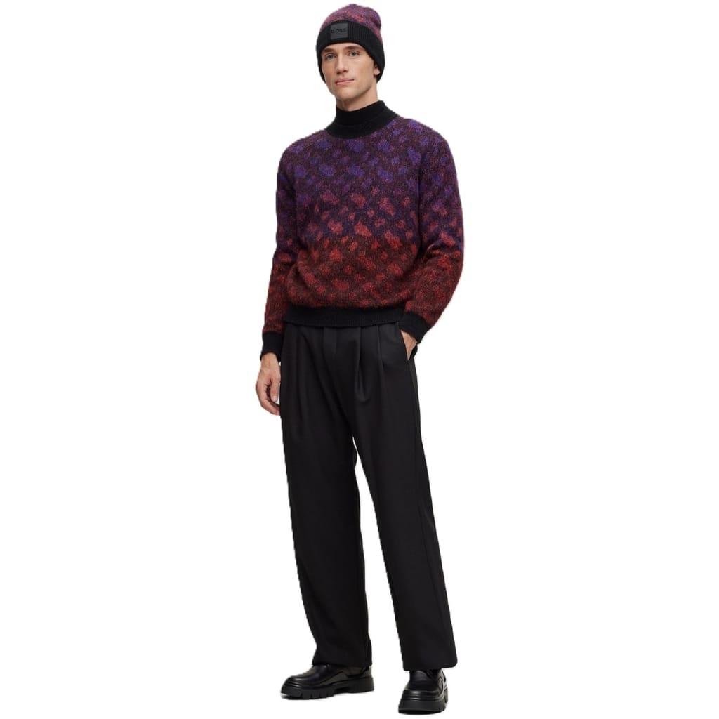 This Boss top features a regular fit with long sleeves and a crew neck. The abstract pattern adds a unique touch, while the ribbed cuffs provide a comfortable finish. -
