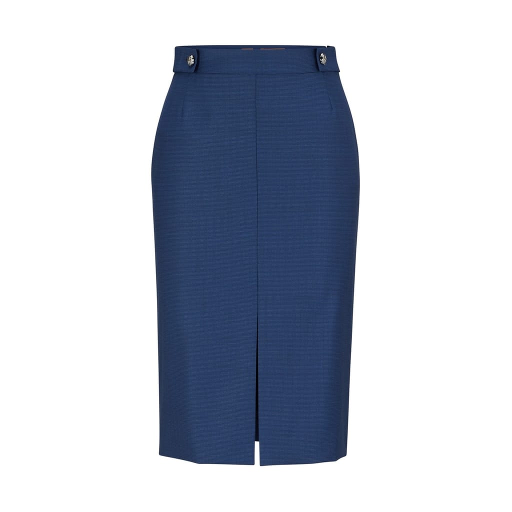 This Boss midi pencil skirt is a sophisticated addition to any wardrobe. Designed with a slim fit, it offers a sleek silhouette that flatters the figure. The button closure adds a touch of elegance, making it perfect for casual collections. Ideal for those seeking a refined yet understated look. -