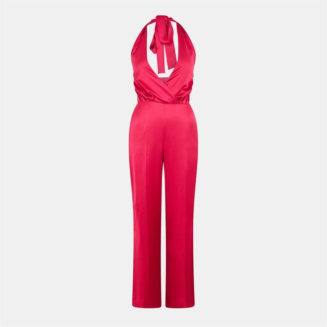 Discover the elegance of Hugo's wrap jumpsuit, featuring a halter neck and sleeveless design. This regular fit piece is crafted for a sophisticated look, complete with a tie closure for added style and comfort. -