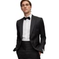 This Boss suit jacket from the formal collection features a solid pattern and a shawl collar. Designed in a short length with a slim fit, it includes a button closure and practical pockets. Ideal for a polished look, this jacket is a versatile addition to any wardrobe. -