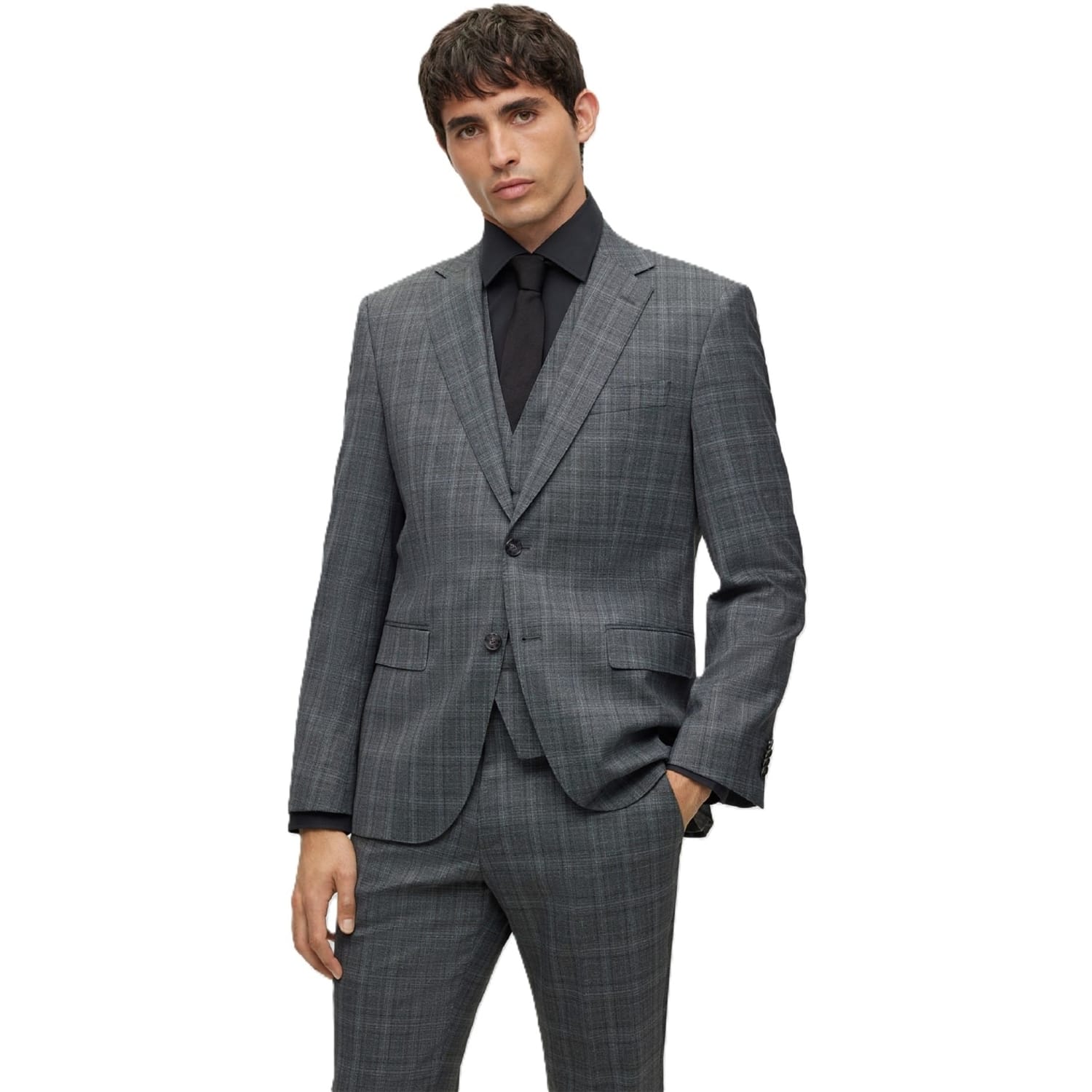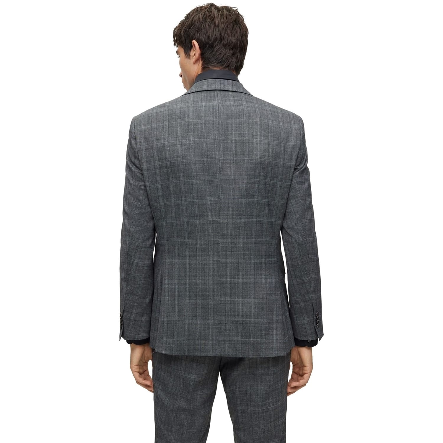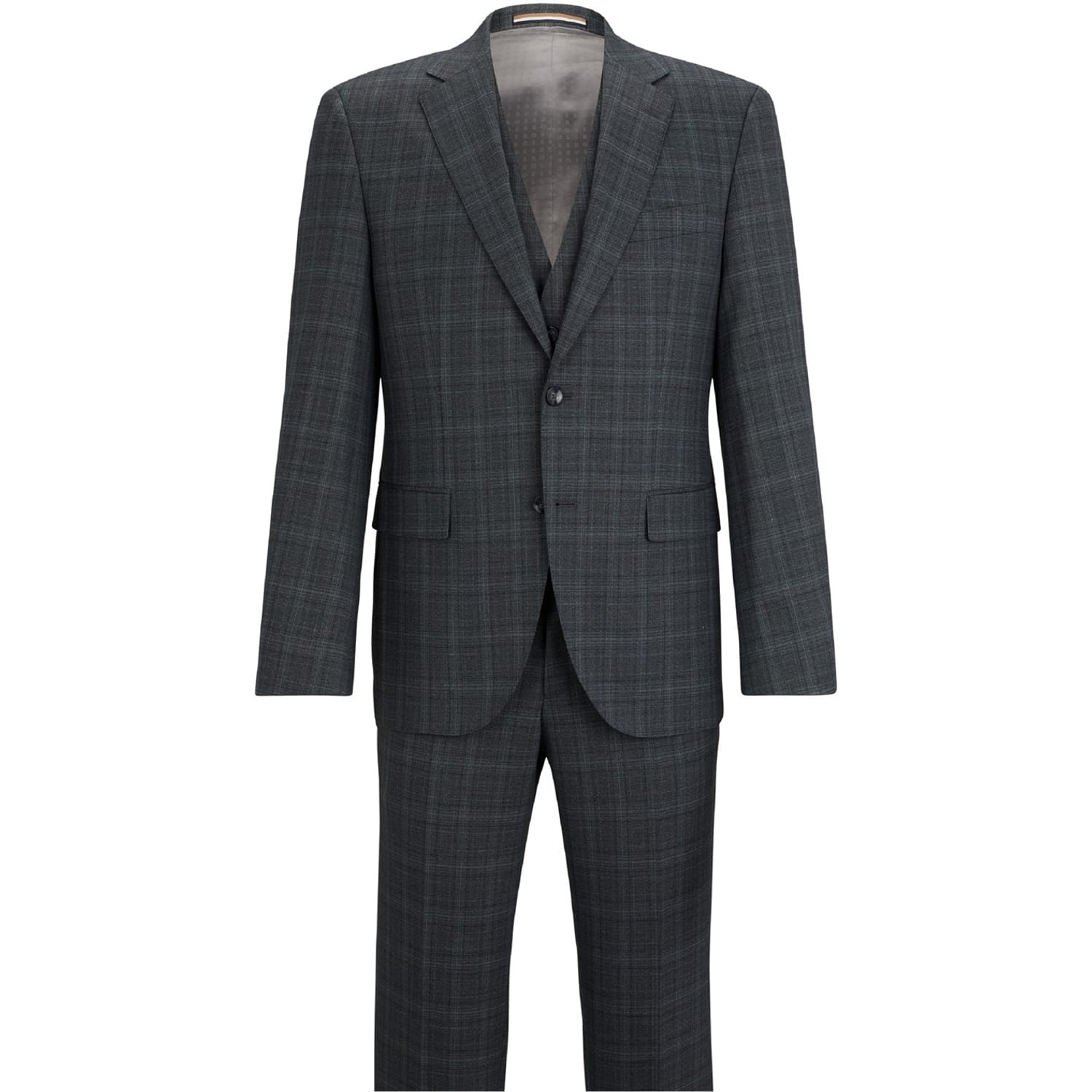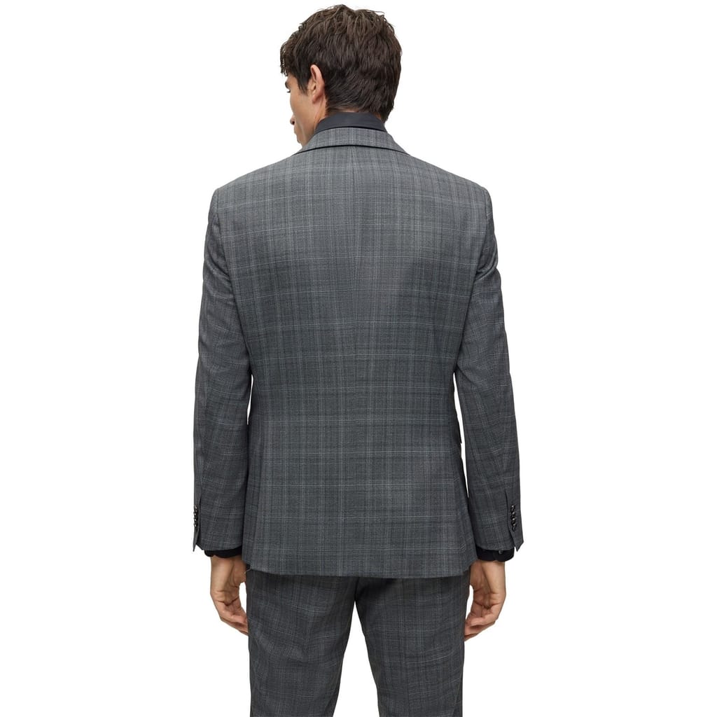 This Boss suit jacket features a classic plaid pattern, offering a sophisticated touch to your wardrobe. Designed with a notch collar and a straight hem, it ensures a timeless appeal. The jacket is tailored in a regular fit and includes a button closure for a refined finish. -