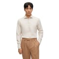 The Boss Liam top is a formal piece featuring a polka dot pattern. It has long sleeves with barrel cuffs and a spread collar. The regular fit ensures comfort, while the button closure adds a classic touch. A subtle logo embellishment completes the design, making it a sophisticated choice for any formal occasion. -
