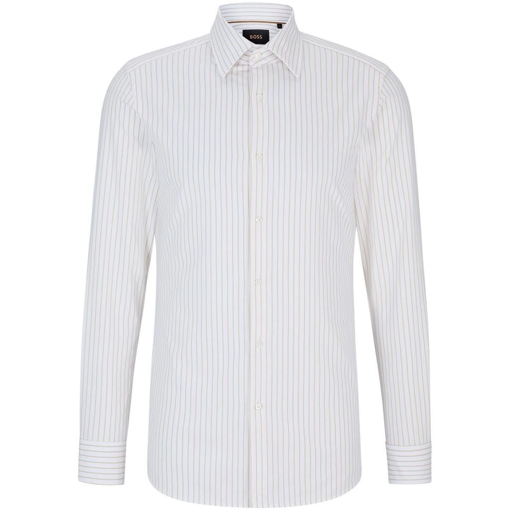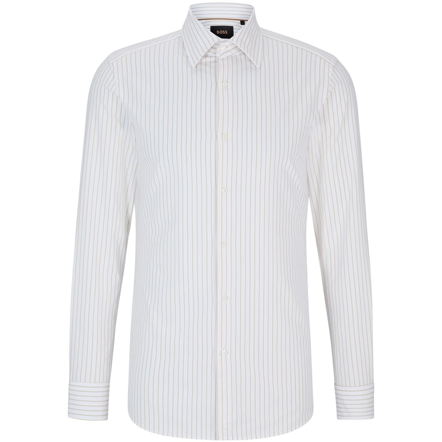 This Boss top features a regular fit with long sleeves and a point collar. The vertical stripe pattern adds a touch of sophistication, while the button closure and barrel cuffs complete the design. -