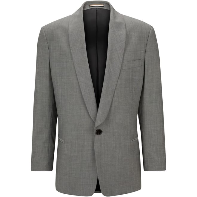 This Boss softshell jacket from the formal collection features a shawl collar and a single button closure. Designed with a regular fit, it includes a straight hem and solid pattern. The jacket is equipped with practical chest and slant pockets, offering both style and functionality. -