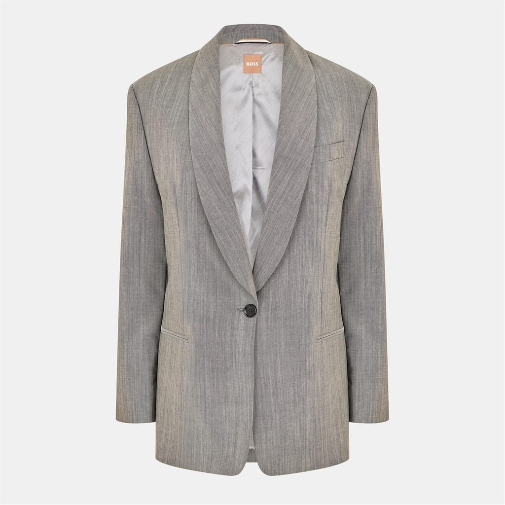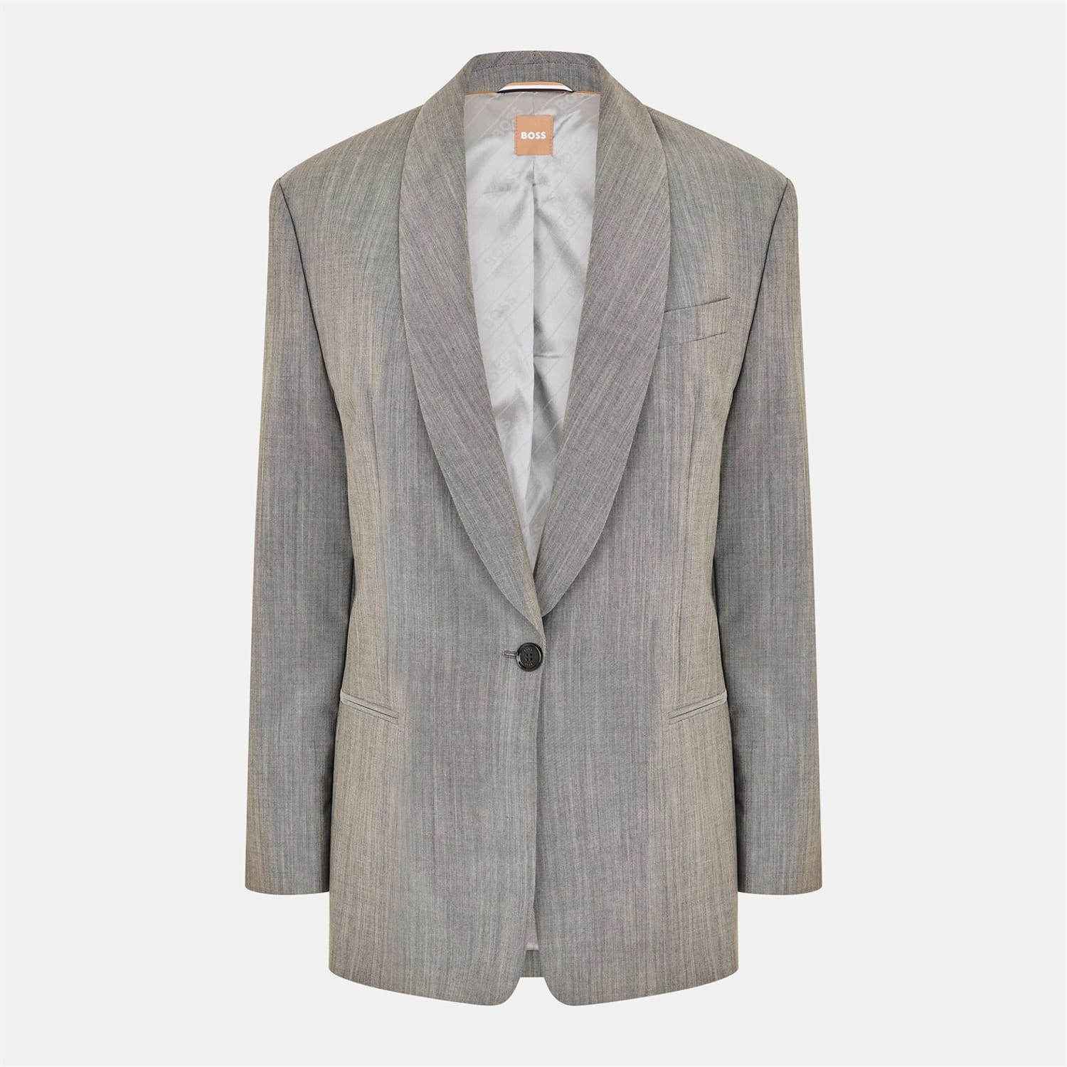 This Boss blazer is a sophisticated addition to any formal collection. Featuring a shawl neck and a button closure, it offers a regular fit with a straight hem. The solid pattern enhances its classic appeal, making it a versatile choice for various occasions. -