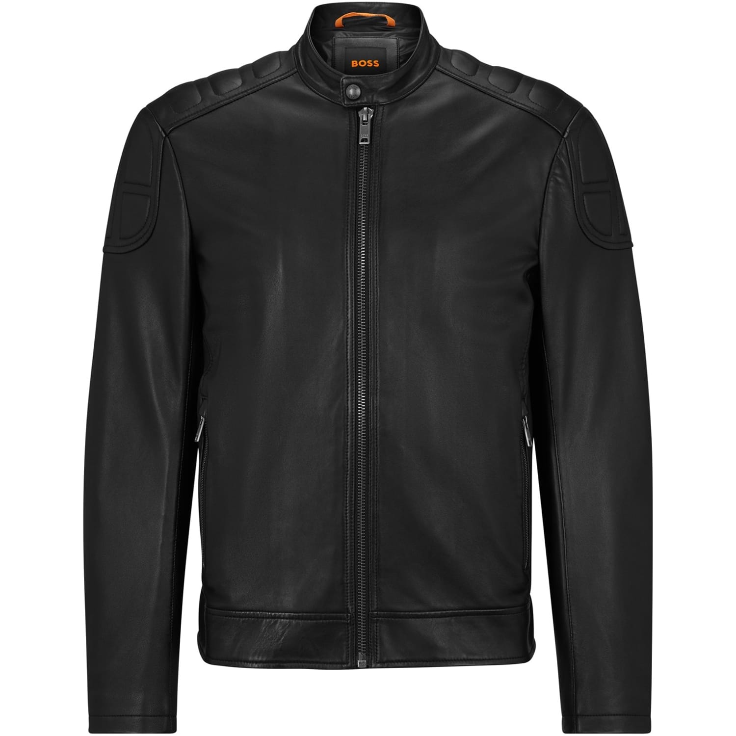 This Boss bike jacket is a stylish choice for those seeking a sleek, solid design. Featuring a convenient zipper closure, it offers both functionality and a modern aesthetic. Crafted with attention to detail, this jacket is perfect for adding a touch of sophistication to your wardrobe. -
