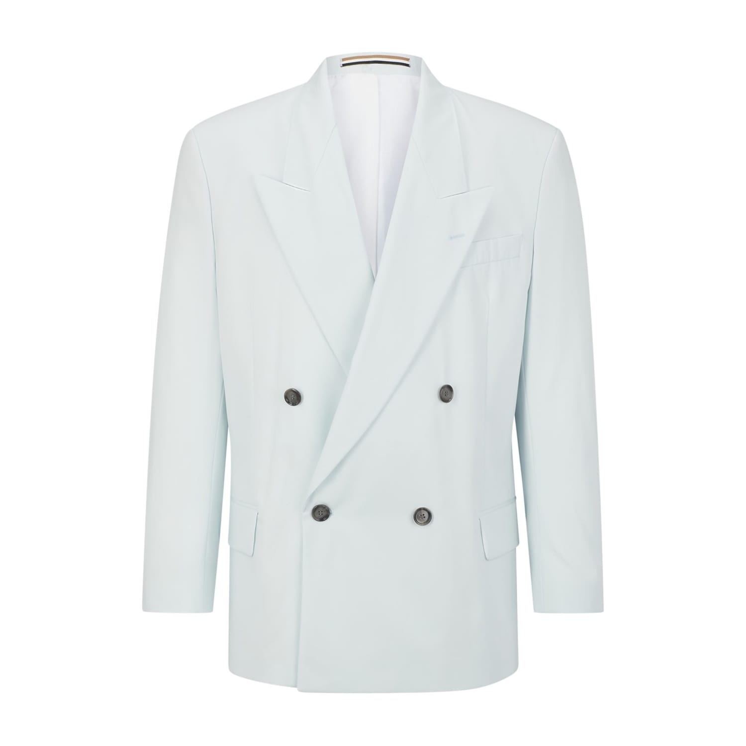 This Boss blazer is a sophisticated choice for formal occasions. Crafted with a lapel collar and a double-button closure, it features a regular fit and a straight hem. The solid pattern adds a classic touch, making it a versatile addition to any wardrobe. -