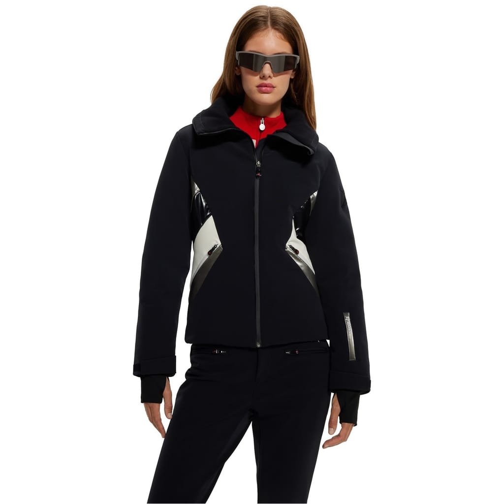 This Boss ski jacket features a solid pattern and a regular fit, designed for optimal comfort and style. The jacket is equipped with a zipper closure and a straight hem, ensuring a sleek and functional design. -