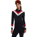 This Boss ski jacket features a slim fit and a stylish color block pattern. It includes a zip neck and a straight hem, complemented by ribbed cuffs for added comfort. The jacket is equipped with a zipper closure and showcases a distinctive logo embellishment, making it a practical and fashionable choice for your winter wardrobe. -
