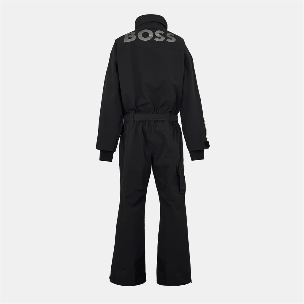 The BOSS Ski Suit combines technical excellence with alpine style for winter sports. This waterproof one-piece jumpsuit offers warmth and mobility with a sculpted fit for adults to wear comfortably on the slopes. The insulated suit balances performance engineering with design details for mountain conditions, creating a cool look. This winter apparel suits skiing and snowboarding. Comes in black, white, blue and red.