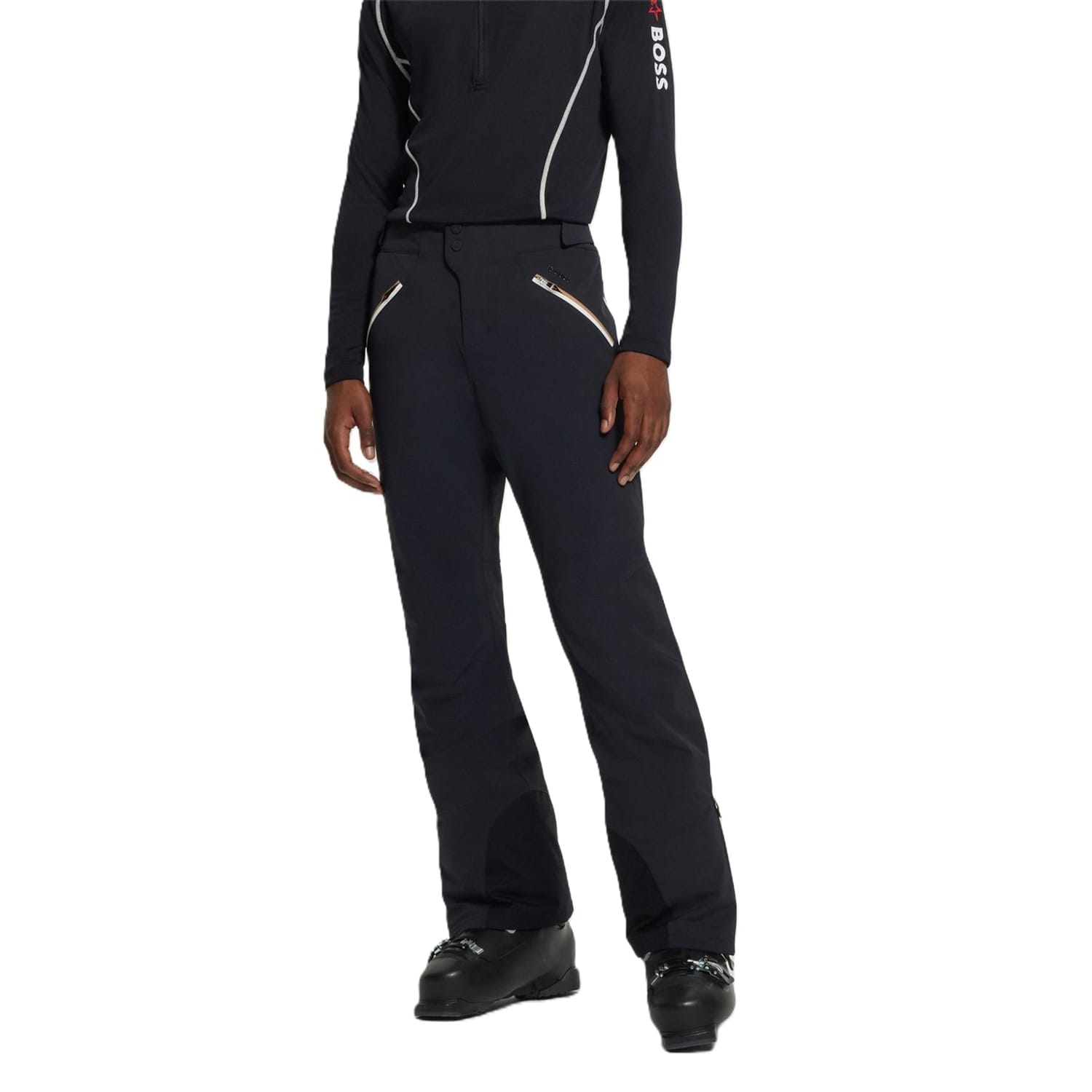 Boss ski pants are designed for those who seek both style and functionality on the slopes. Featuring a zipper closure, these salopette-style pants offer a regular fit, ensuring comfort and ease of movement. Ideal for athletic pursuits, they combine practicality with a sleek design, making them a reliable choice for winter sports enthusiasts. -