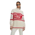 This Boss top is designed for winter with a relaxed fit and long sleeves. It features a turtleneck and ribbed cuffs, offering both style and comfort. The striped pattern adds a classic touch, while the embroidered logo embellishment provides a subtle brand detail. -