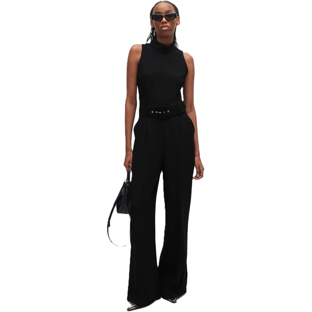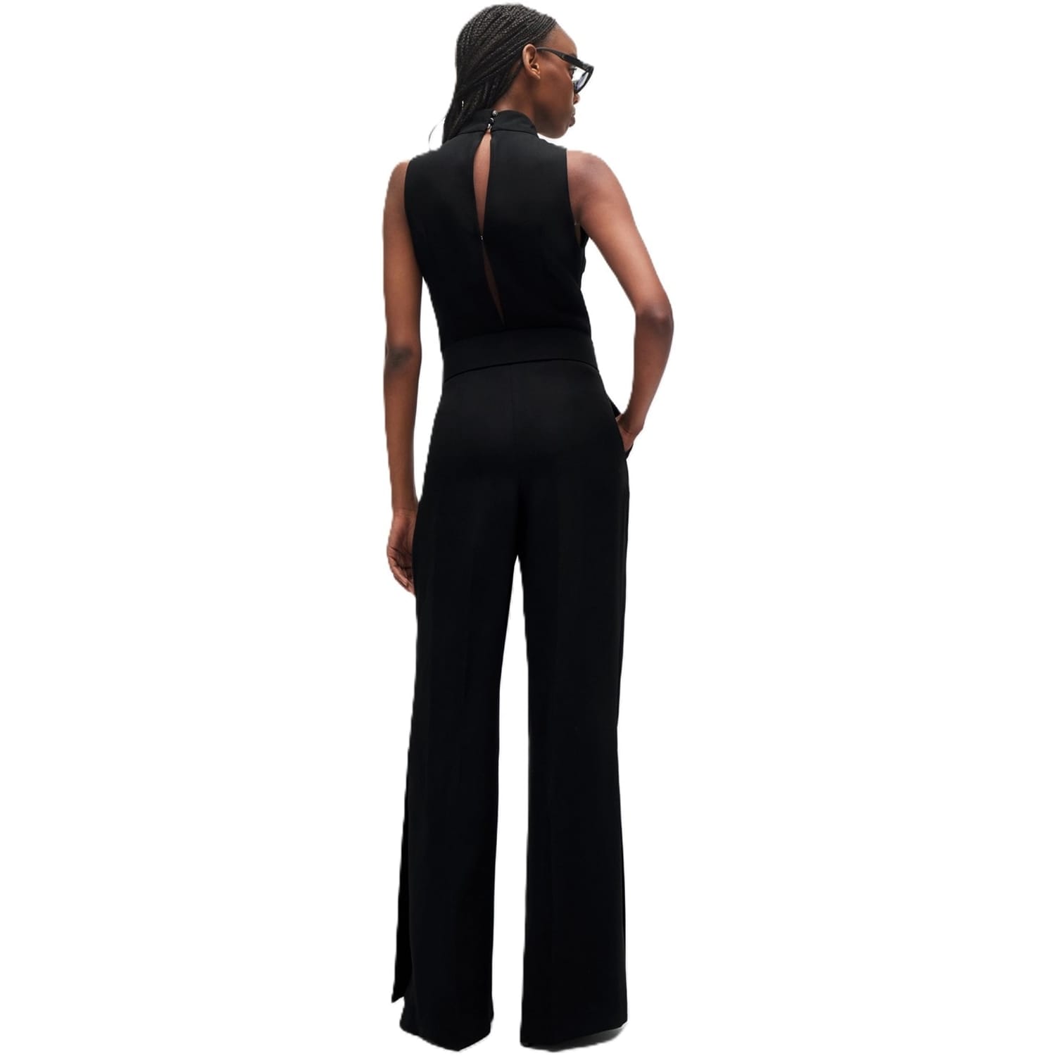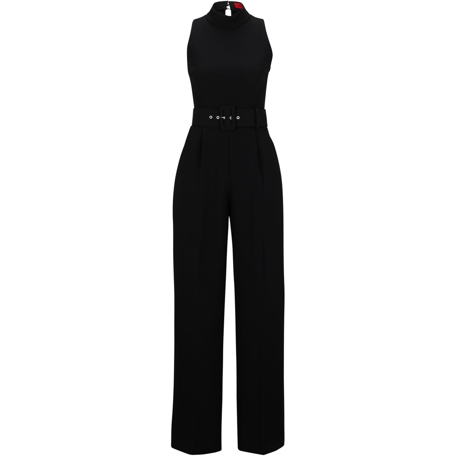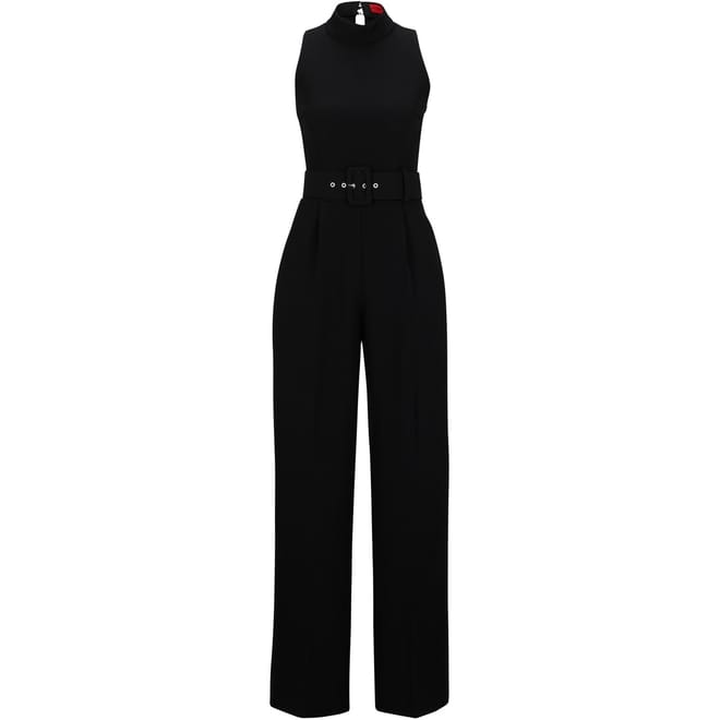 Discover the Hugo sleeveless jumpsuit, featuring a mock neck and a regular fit. This elegant piece is designed with a back slit and offers a secure fit with a buckle and zipper closure. Perfect for those seeking a stylish and sophisticated look. -
