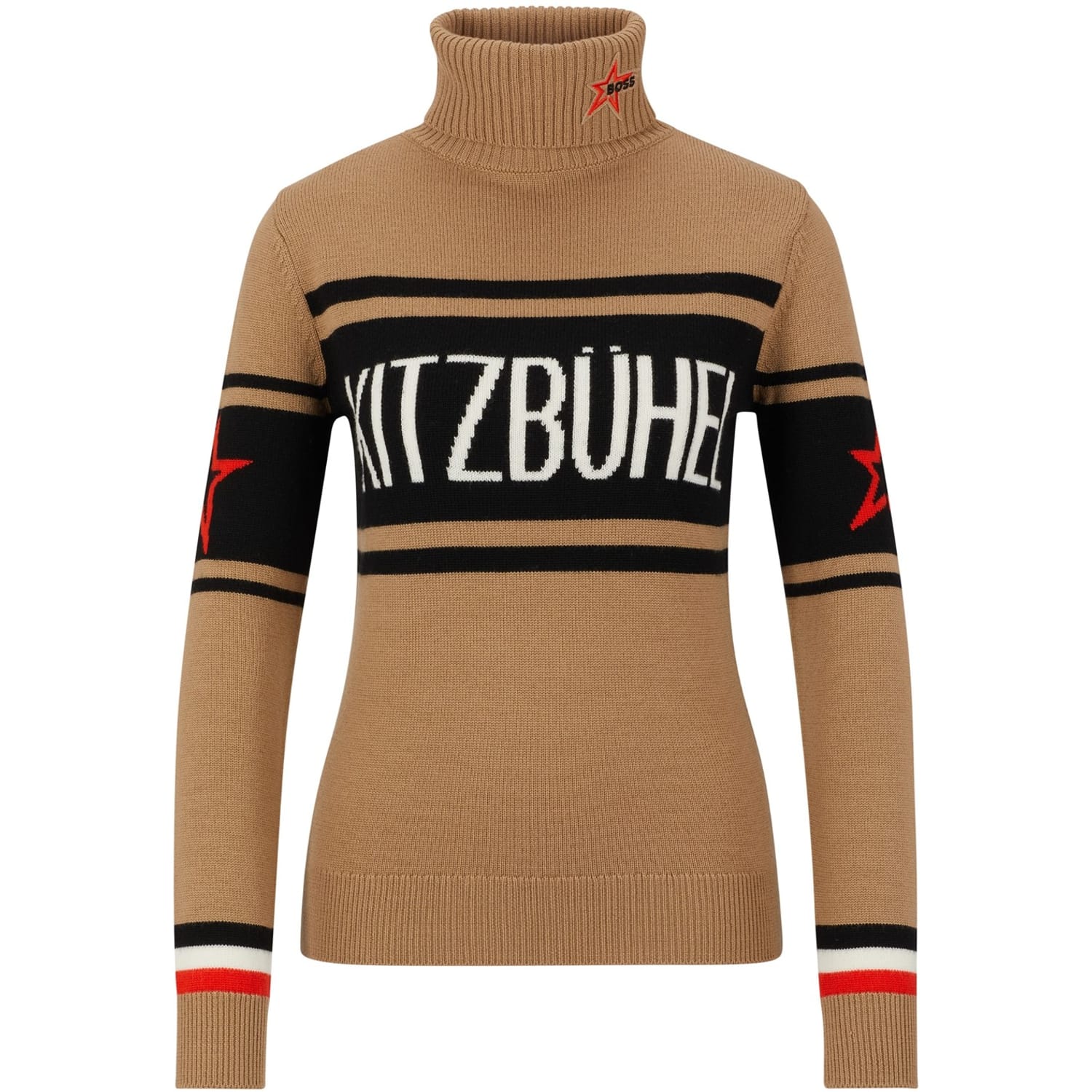 This Boss top features a turtleneck design with long sleeves and a slim fit, offering a sleek silhouette. The ribbed cuffs add a touch of detail, while the graphic print and embroidered logo embellishments provide a stylish finish. -