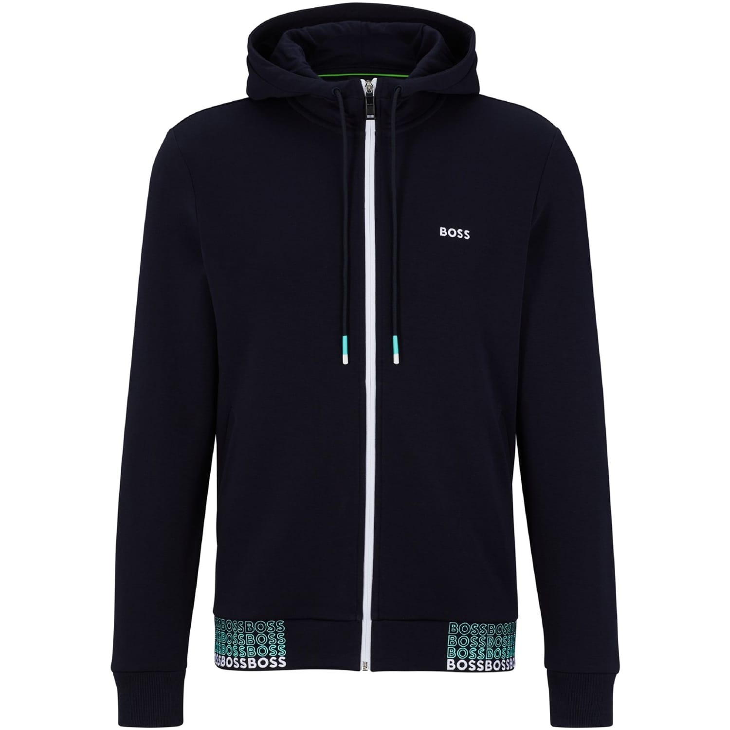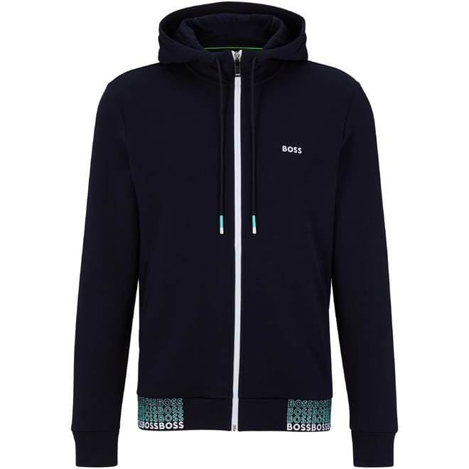 This Boss sweatshirt jacket features a hooded neckline and a solid pattern, offering a sleek and modern look. Designed with a regular fit, it includes a convenient front zipper closure and a straight hem. Ideal for those seeking a blend of style and functionality. -