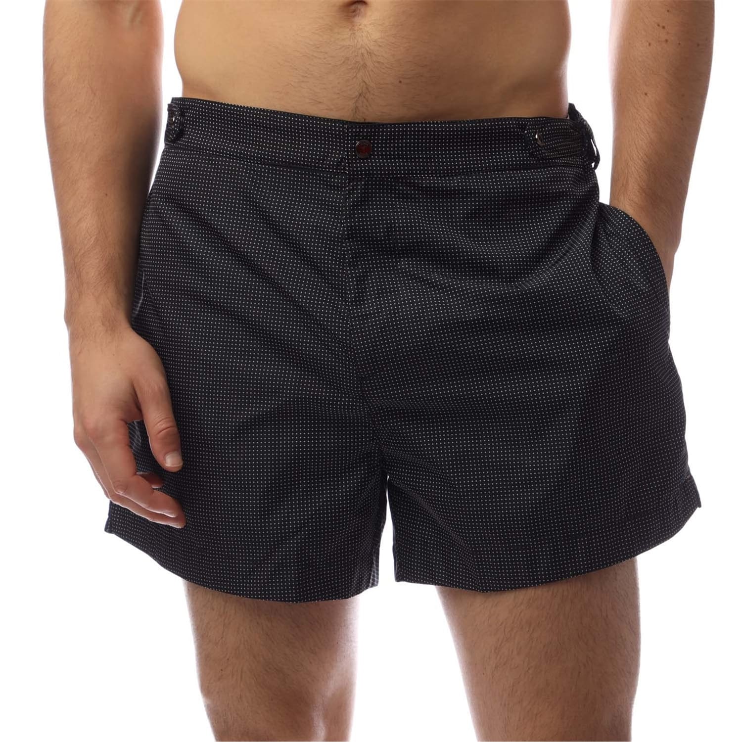 These Boss chino shorts feature a stylish polka dot pattern, adding a touch of flair to your casual wardrobe. Designed with a convenient quarter zipper closure, they offer both functionality and style. The shorts are equipped with practical pockets, making them a versatile choice for any casual occasion. -