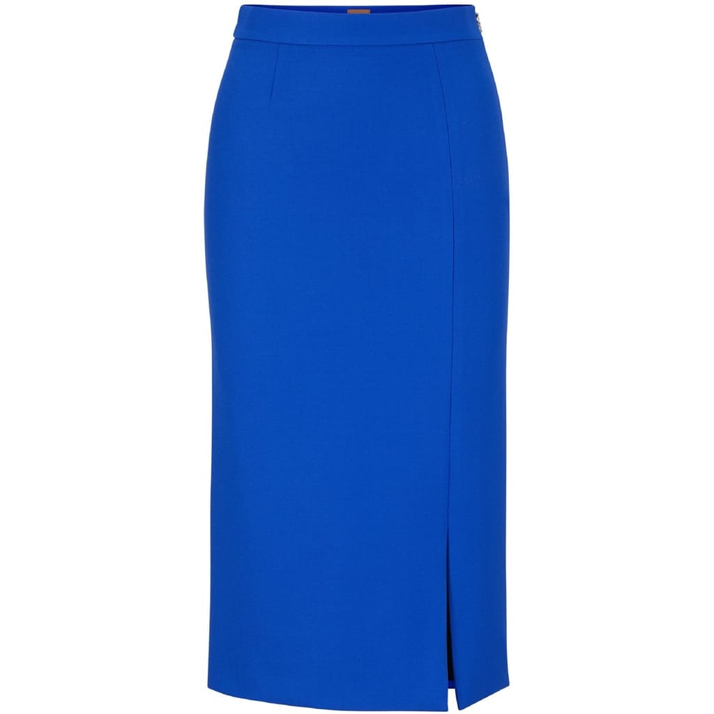 Elevate your wardrobe with this Boss midi pencil skirt, perfect for casual collections. Designed with a slim fit, it features a stylish slit, adding a touch of sophistication to your ensemble. Ideal for those seeking a blend of elegance and modern style. -