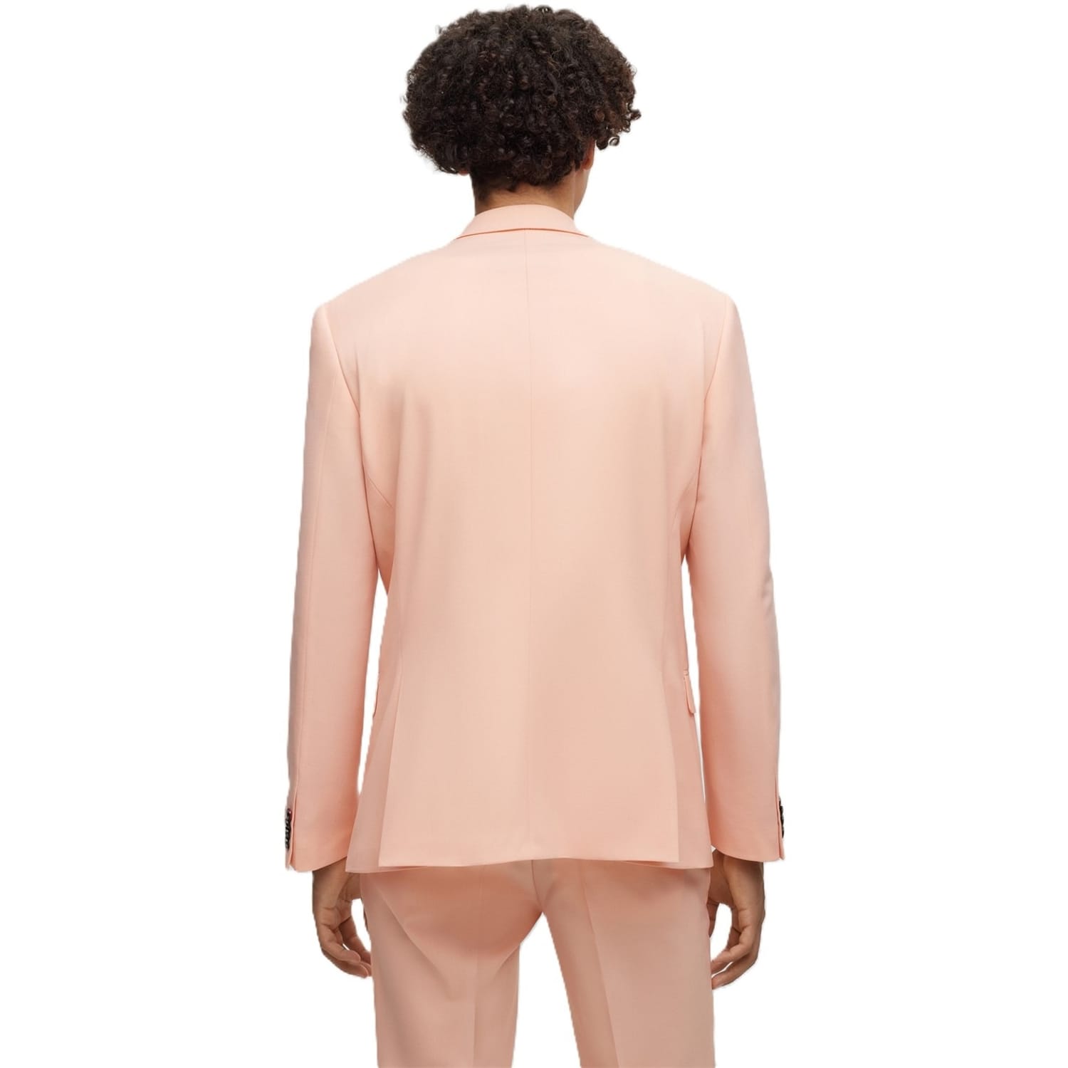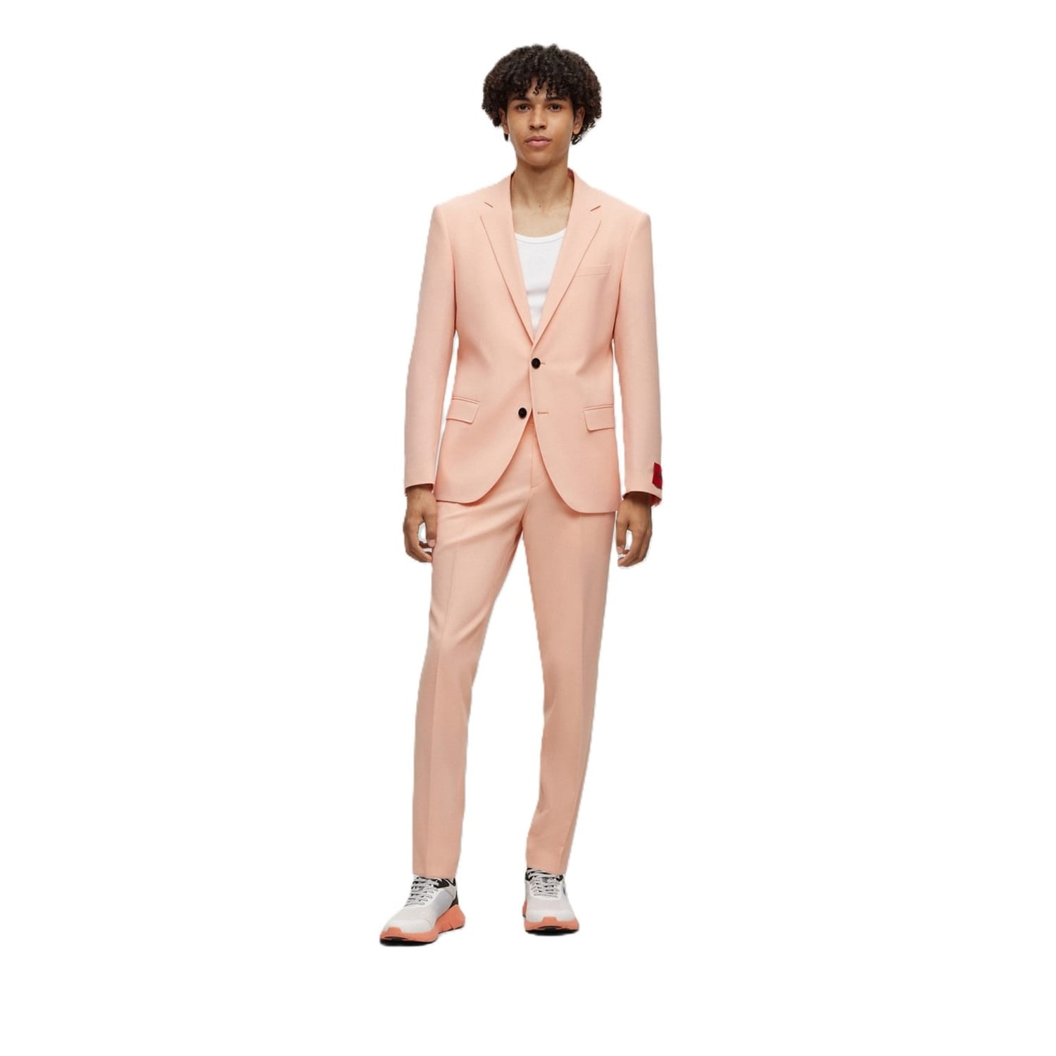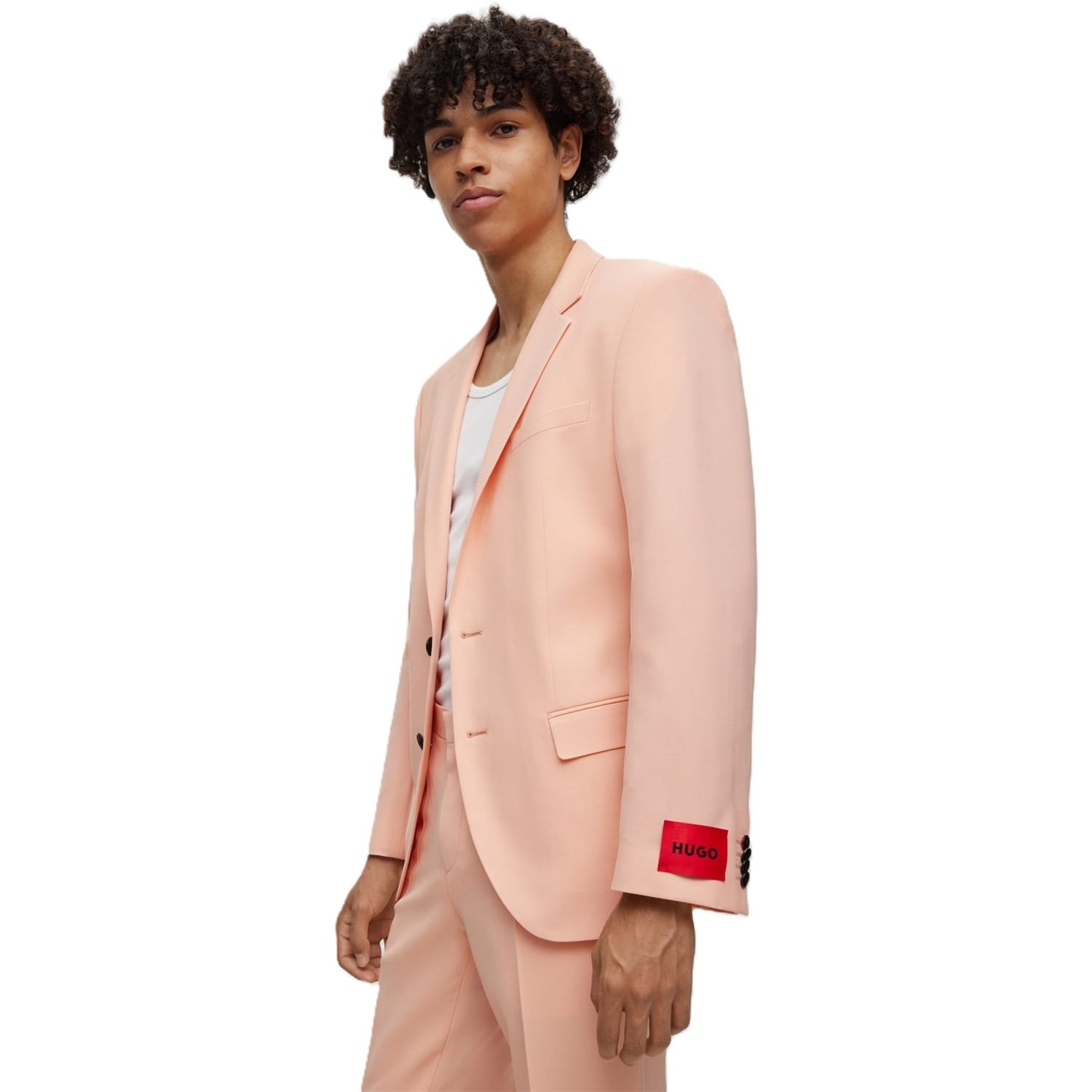 This Hugo suit jacket from the formal collection features a notch collar and a button closure, offering a sleek and sophisticated look. The slim fit design is complemented by a straight hem and cuff sleeves, while the solid pattern adds a classic touch. A subtle logo embellishment completes the elegant style, making it a refined choice for formal occasions. -