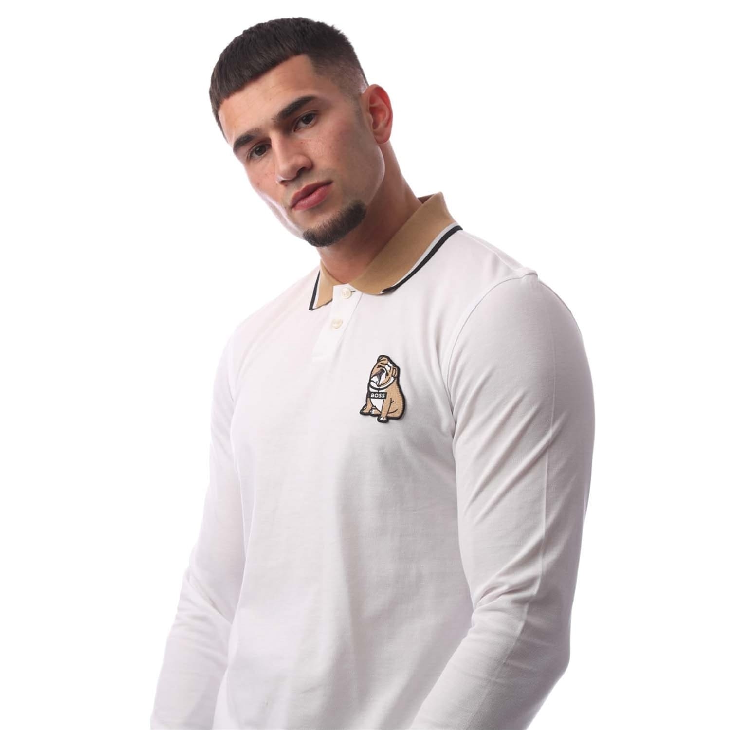 This Boss top features a classic polo collar and a button closure, offering a timeless look. The long sleeves are complemented by ribbed cuffs, ensuring a comfortable fit. Crafted in a solid pattern, this regular fit top is a versatile addition to any wardrobe. -