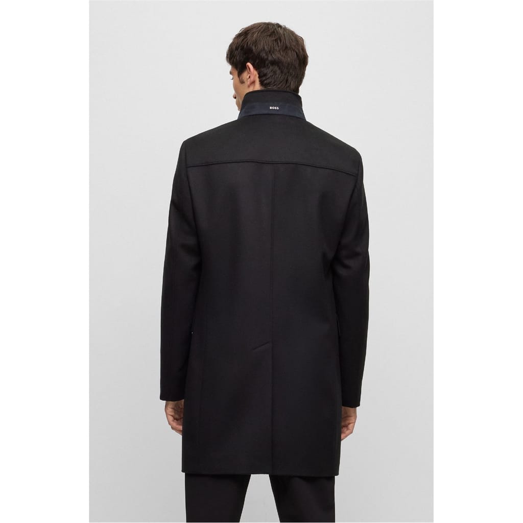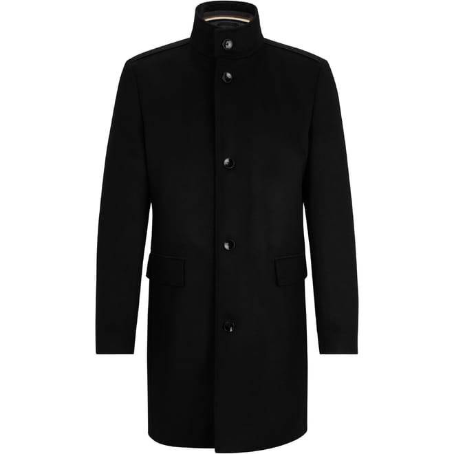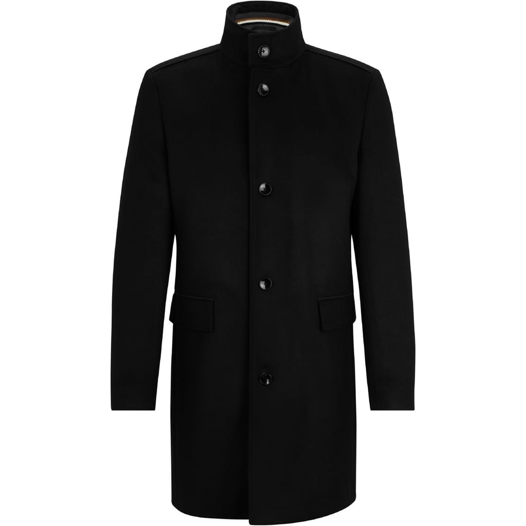 This Boss overcoat from the formal collection is a sophisticated choice for any wardrobe. Featuring a high neck and a button closure, it offers a regular fit with a straight hem. The solid pattern and practical pockets add to its timeless appeal, making it a versatile addition to your outerwear collection. -