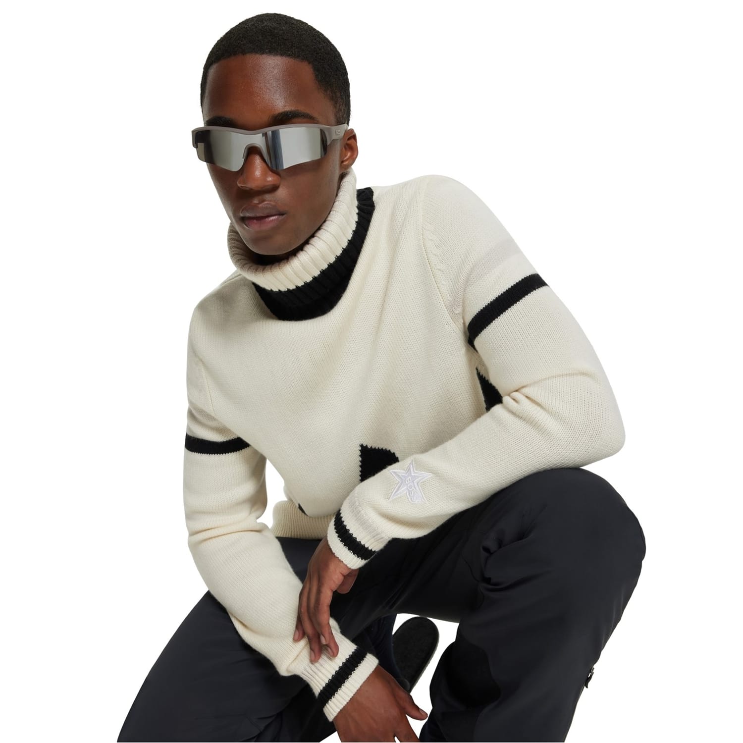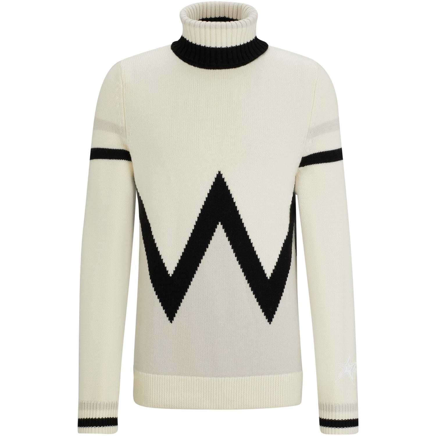 This Boss top features a stylish turtle neck and long sleeves, offering a regular fit. The striped pattern adds a touch of sophistication, while the ribbed cuffs provide a comfortable finish. -