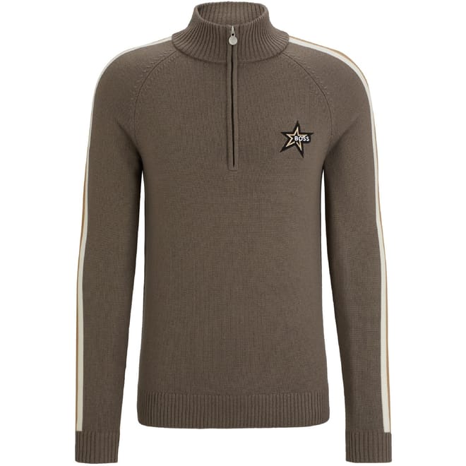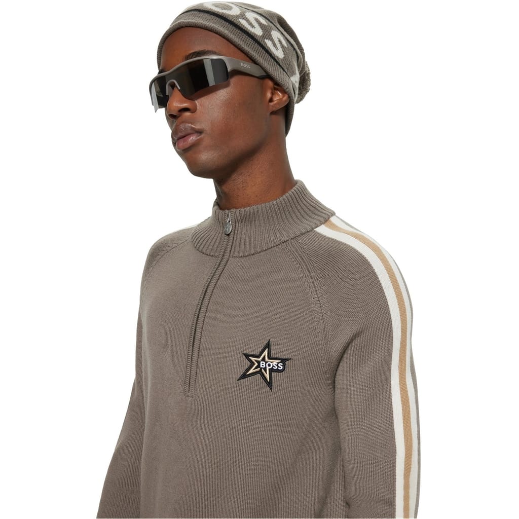 This Boss top features a stylish zip neck and a regular fit, perfect for a sleek look. The long raglan sleeves and ribbed cuffs add a touch of comfort, while the ribbed collar enhances its classic appeal. The solid pattern is complemented by a subtle logo embellishment, making it a versatile addition to your wardrobe. -