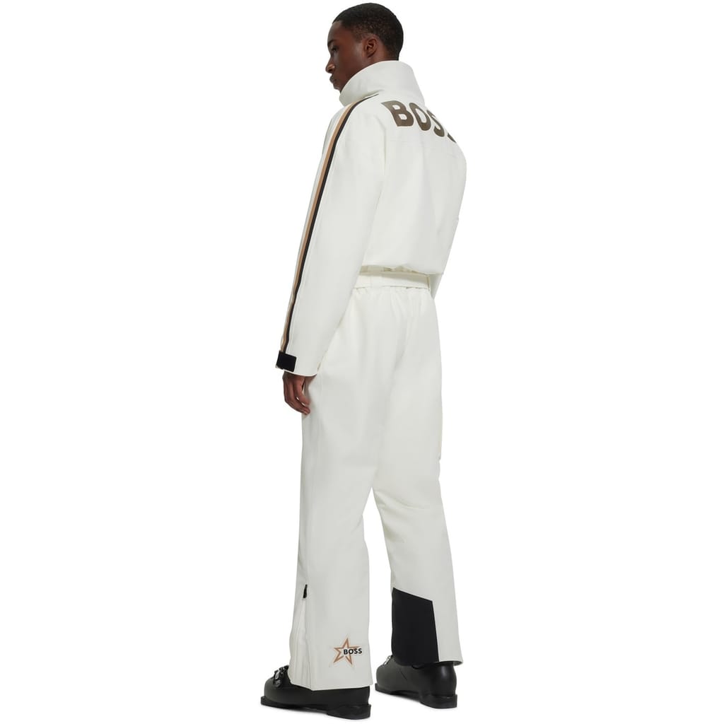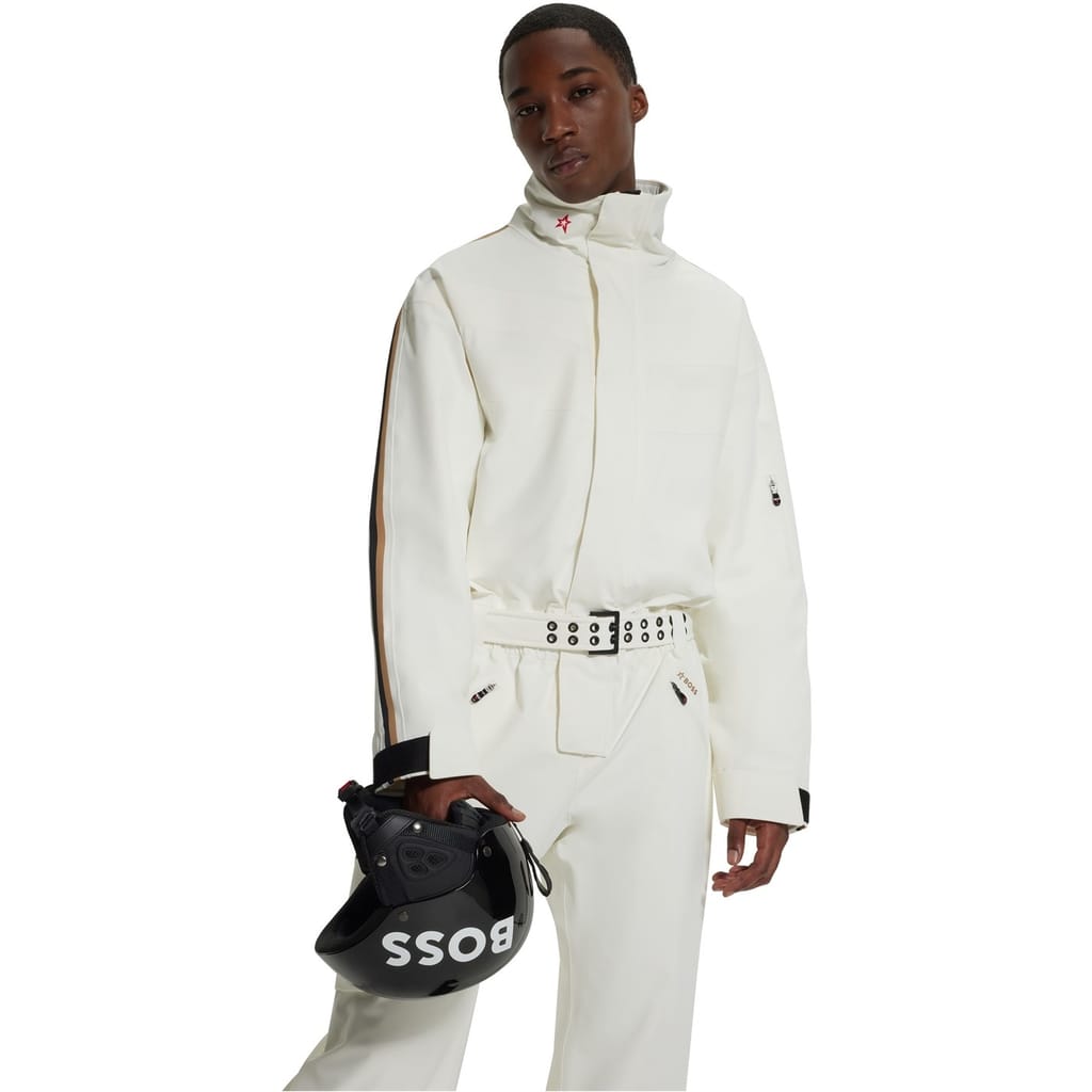 The BOSS Ski Suit combines technical excellence with alpine style for winter sports. This waterproof one-piece jumpsuit offers warmth and mobility with a sculpted fit for adults to wear comfortably on the slopes. The insulated suit balances performance engineering with design details for mountain conditions, creating a cool look. This winter apparel suits skiing and snowboarding. Comes in black, white, blue and red.