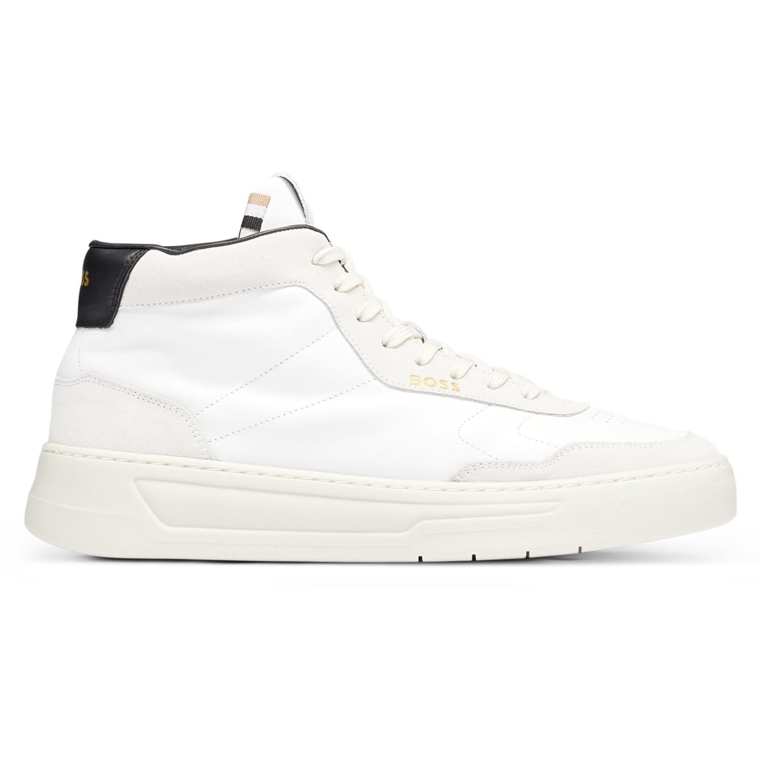 The Boss Baltimore sneakers are a stylish choice for those seeking mid-top court trainers. These shoes feature a round toe design, offering both comfort and a modern look. Perfect for various activities, they combine functionality with the sleek aesthetic that Boss is known for. -