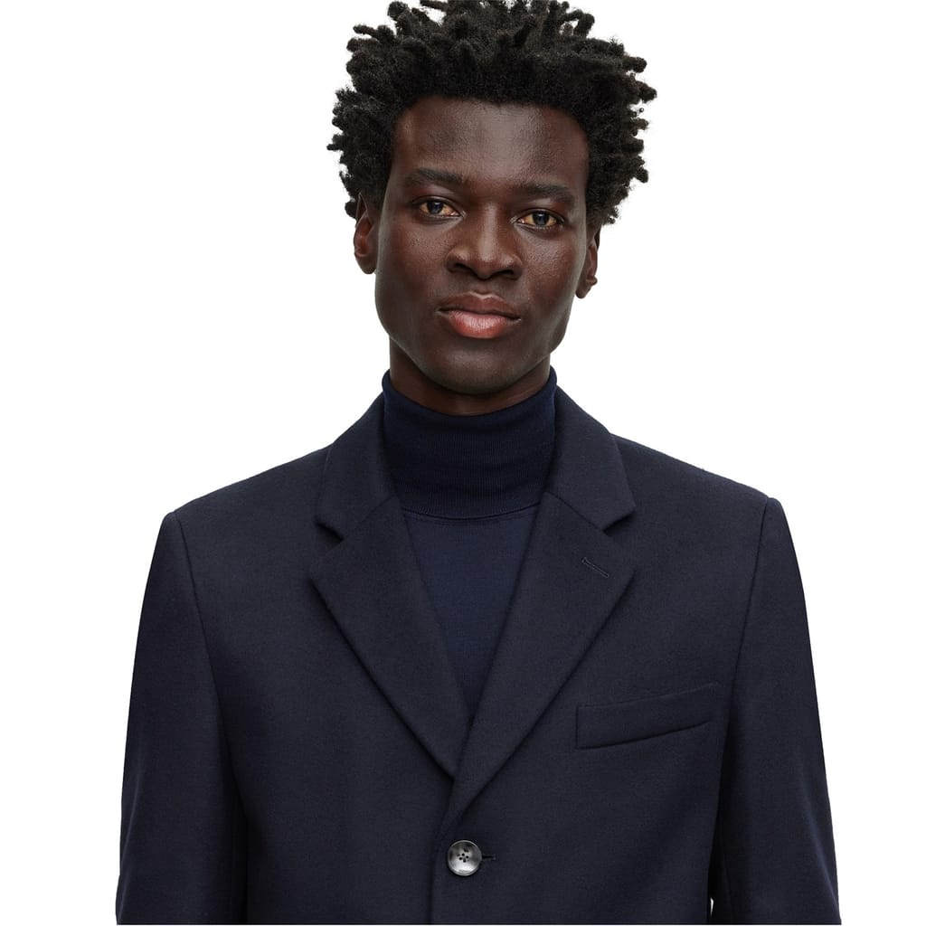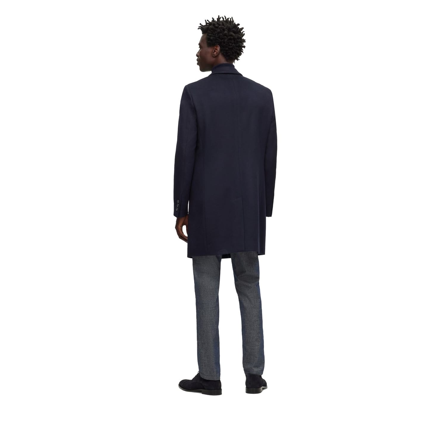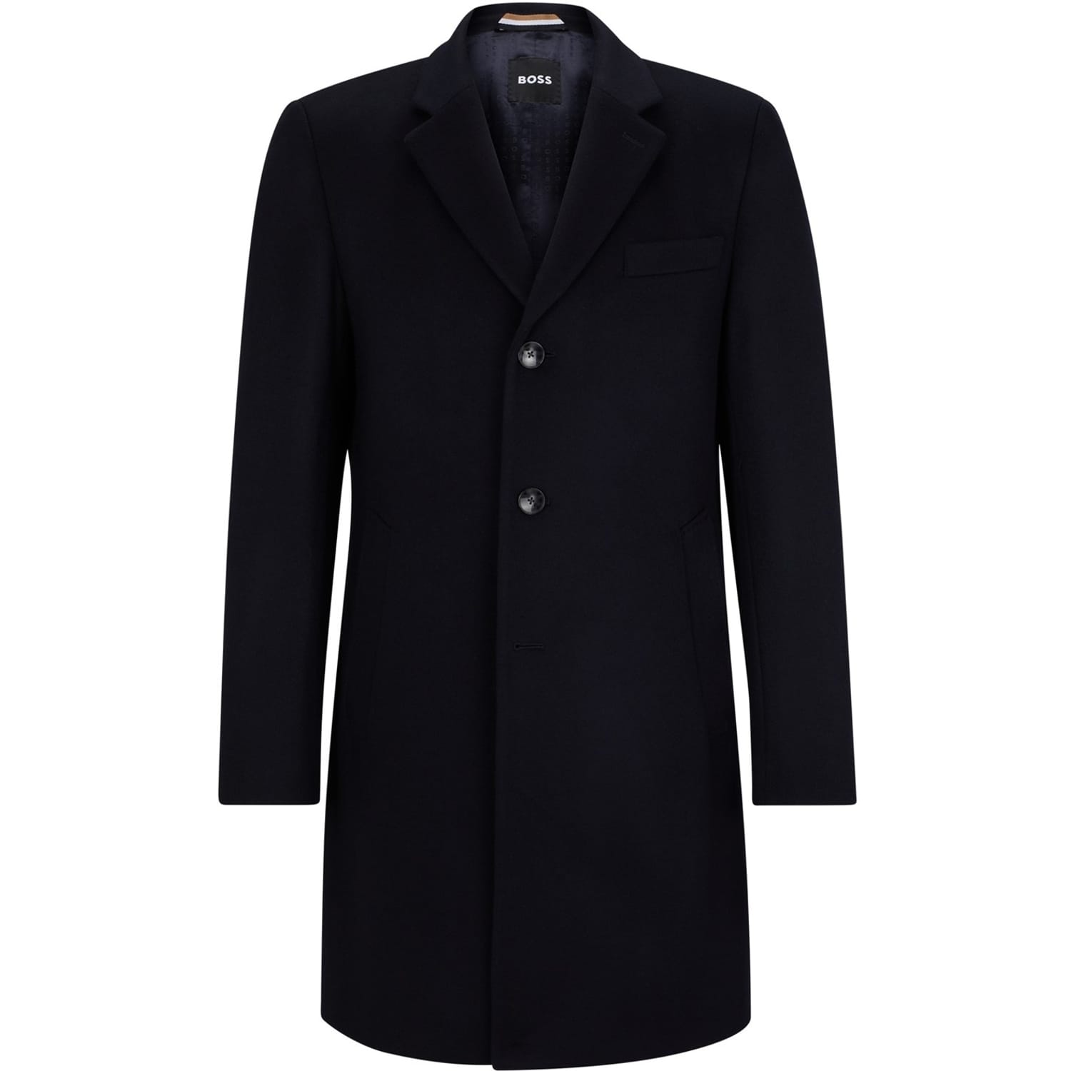 The Boss Hyde overcoat is a sophisticated choice for the modern wardrobe. Featuring a lapel collar and a straight hem, this solid-patterned coat offers a regular fit. The button closure adds a classic touch, making it a versatile piece for various occasions. -