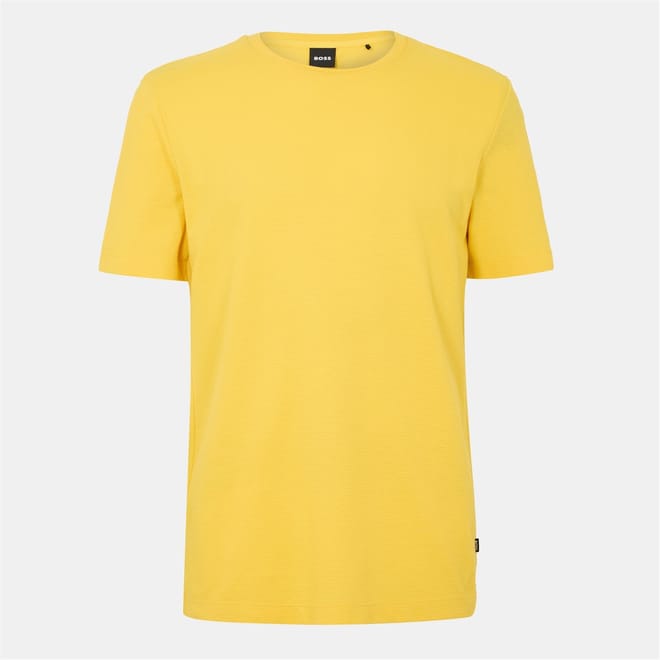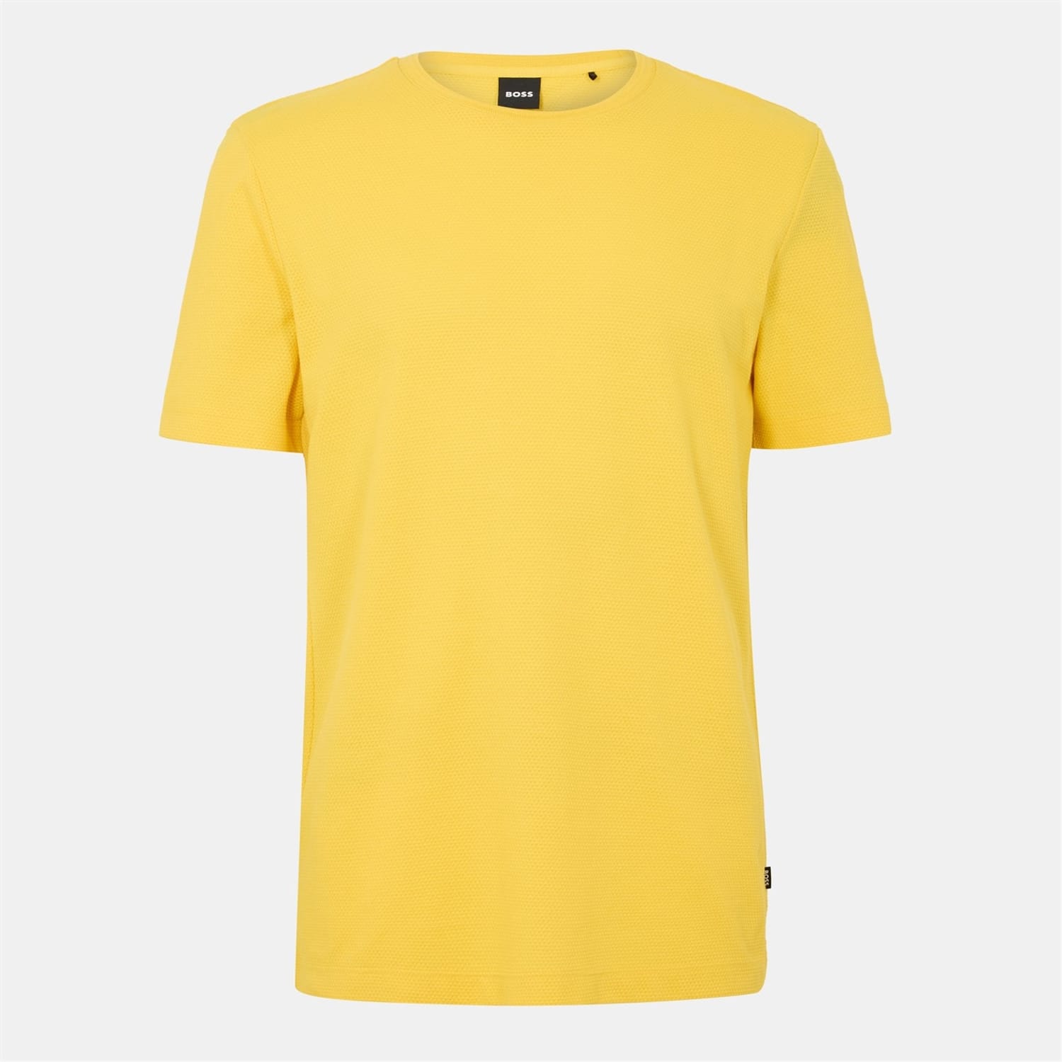 A crew-neck T-shirt by BOSS Menswear, featuring a bubble structure created with a jacquard technique. Styled with a regular fit, this short-sleeved piece is crafted in a cotton blend and simply detailed with a ribbed-cotton collar and a logo flag at the side seam. The mouliné yarn gives this T-shirt a distinctive effect. -