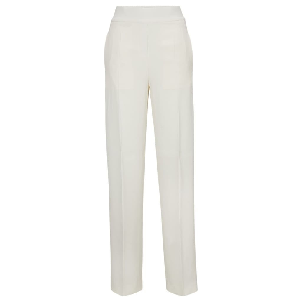 Discover the epitome of modern luxury with the Boss Wide Leg Trousers, a testament to the brand's commitment to quality and sophistication. Meticulously crafted from soft fabrications, these trousers offer both durability and comfort. Featuring a relaxed fit and high-waisted design, these trousers provide a stylish silhouette and timeless appeal, while the full-length and wide-legs add a touch of elegance and sophistication to the design. The seam running down the front of the leg adds an intricate detail that highlights the meticulous craftsmanship of the garment.