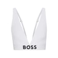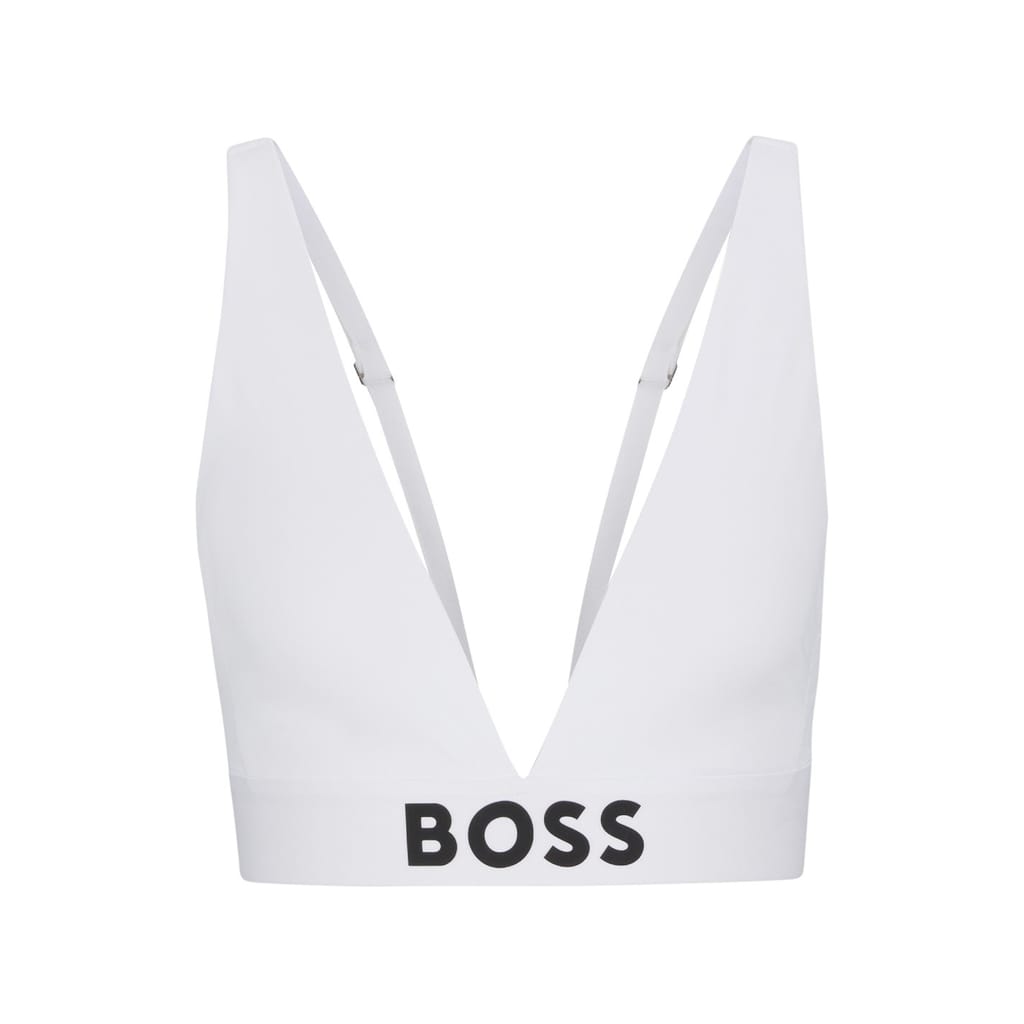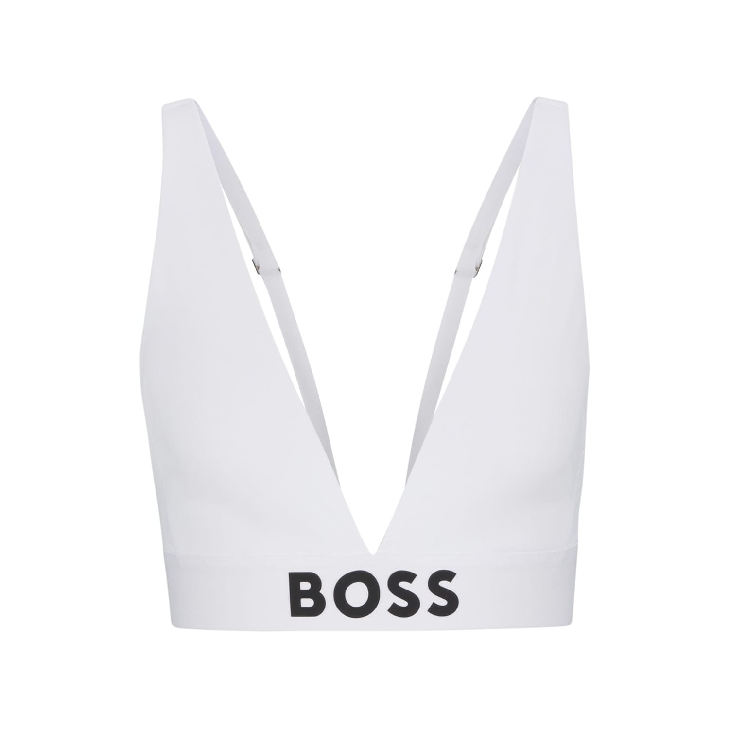 - Its timeless black hue with a contrasting logo at the front, creates a statement piece that combines comfort with style effortlessly. Whether for day-to-day wear or a special evening out, the Boss Bodywear Logo Padded Triangle Bra is designed to enhance your confidence and style, offering a luxurious touch to your intimate apparel collection.