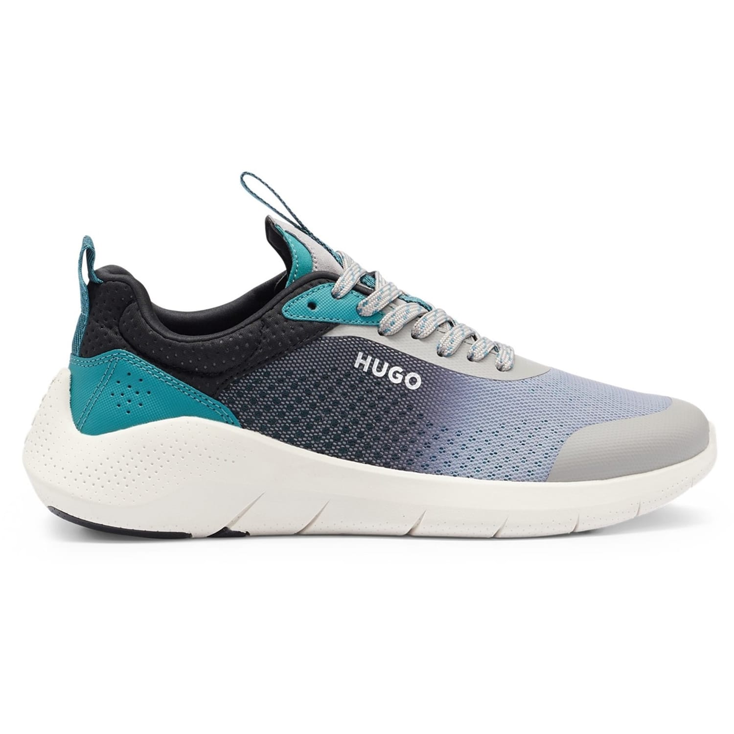 Discover the Hugo low-top sneakers, designed for those who appreciate style and comfort. These runner-style shoes feature a round toe and a unique gradient pattern, making them a standout choice for any casual outing. Perfectly blending fashion and function, these sneakers are an ideal addition to your footwear collection. -